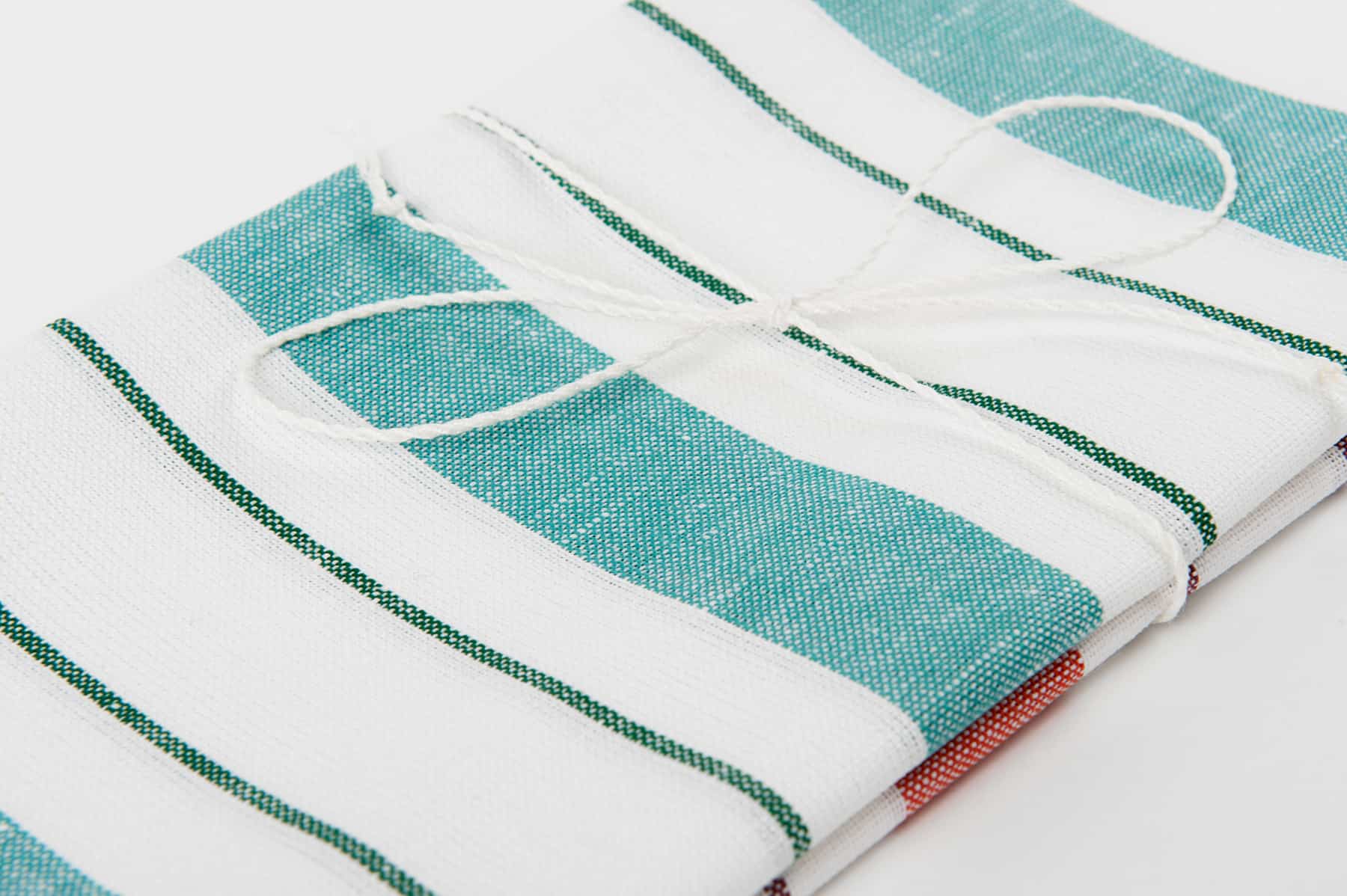 - prvý uterák: mix optickej bielej, studenej zelenej a smaragdovo zelenej