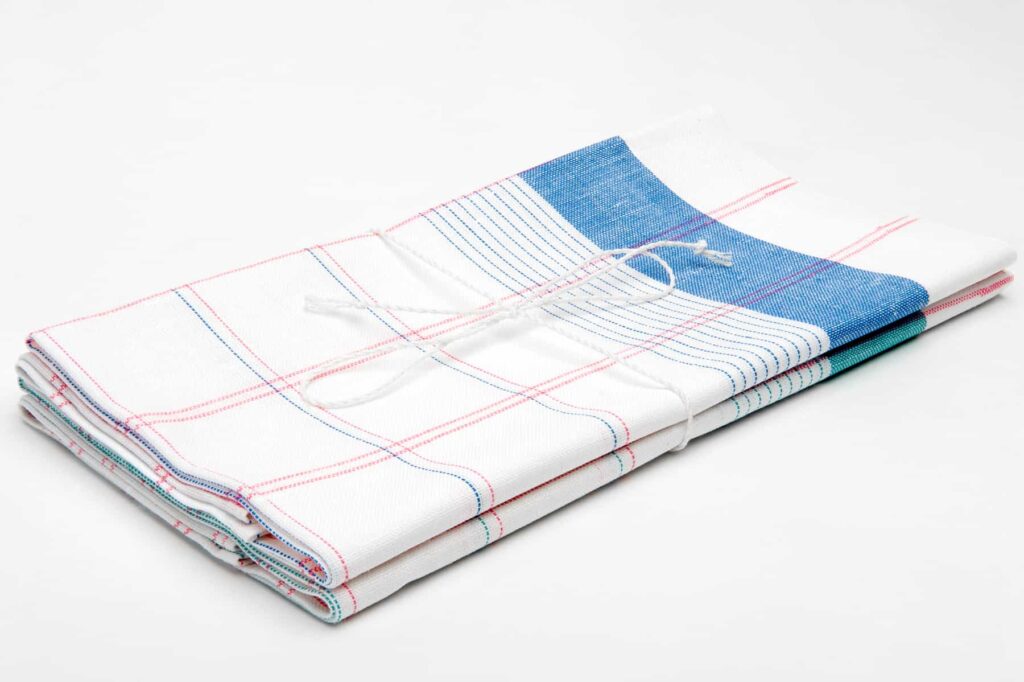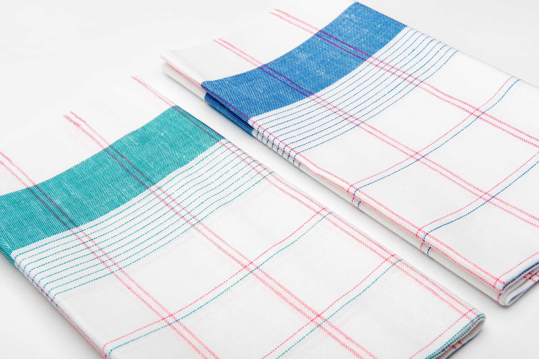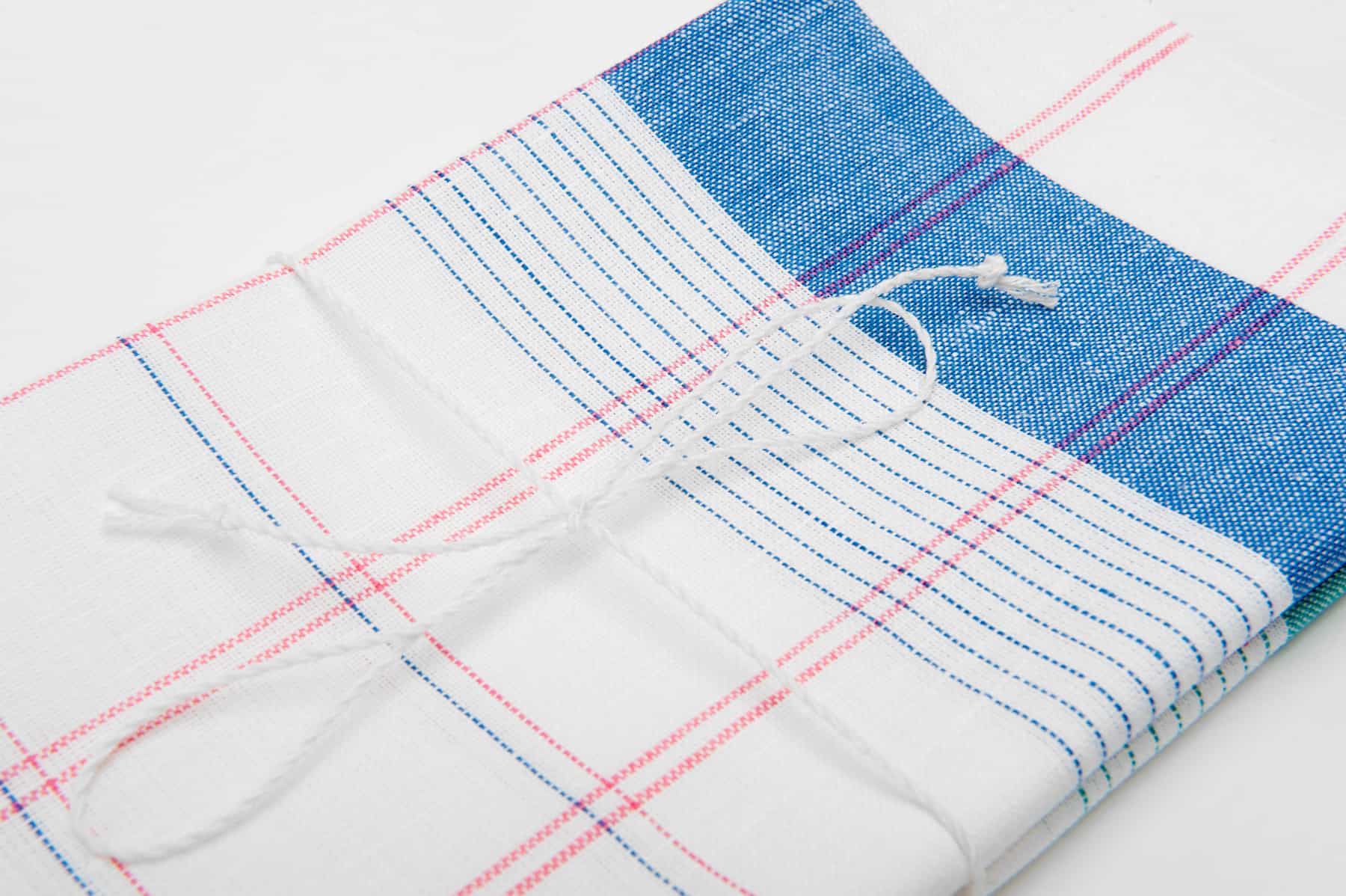 - prvý uterák: mix optickej bielej, modrej a jasnej ružovej