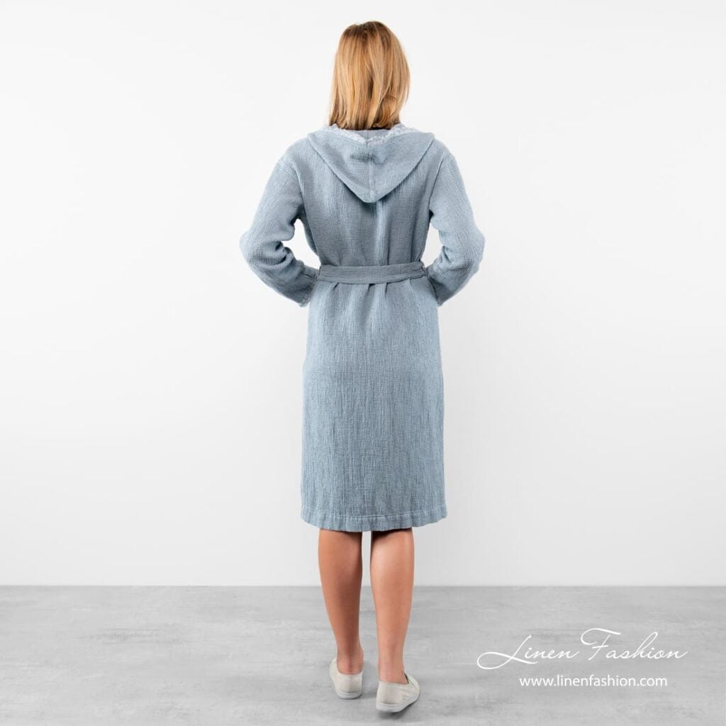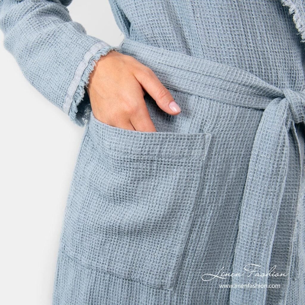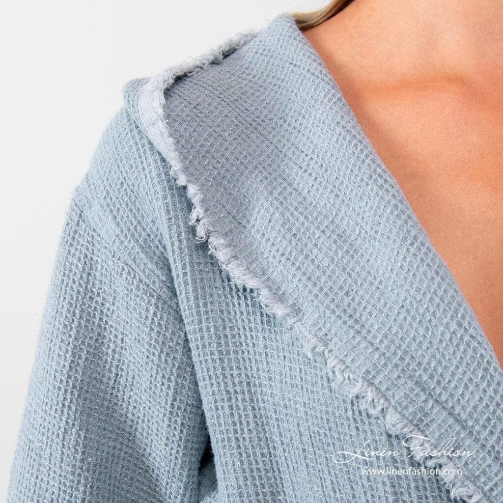 - Detaily: predné vrecká, kapucňa, široký opasok, detaily s krátkymi strapcami