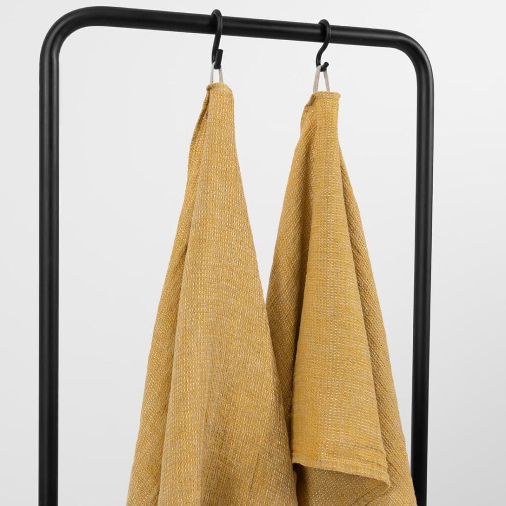 - Farba: zmes prírodného ľanu (nefarbený, hnedosivý) a priadzí vo farbe zlatej okrovej