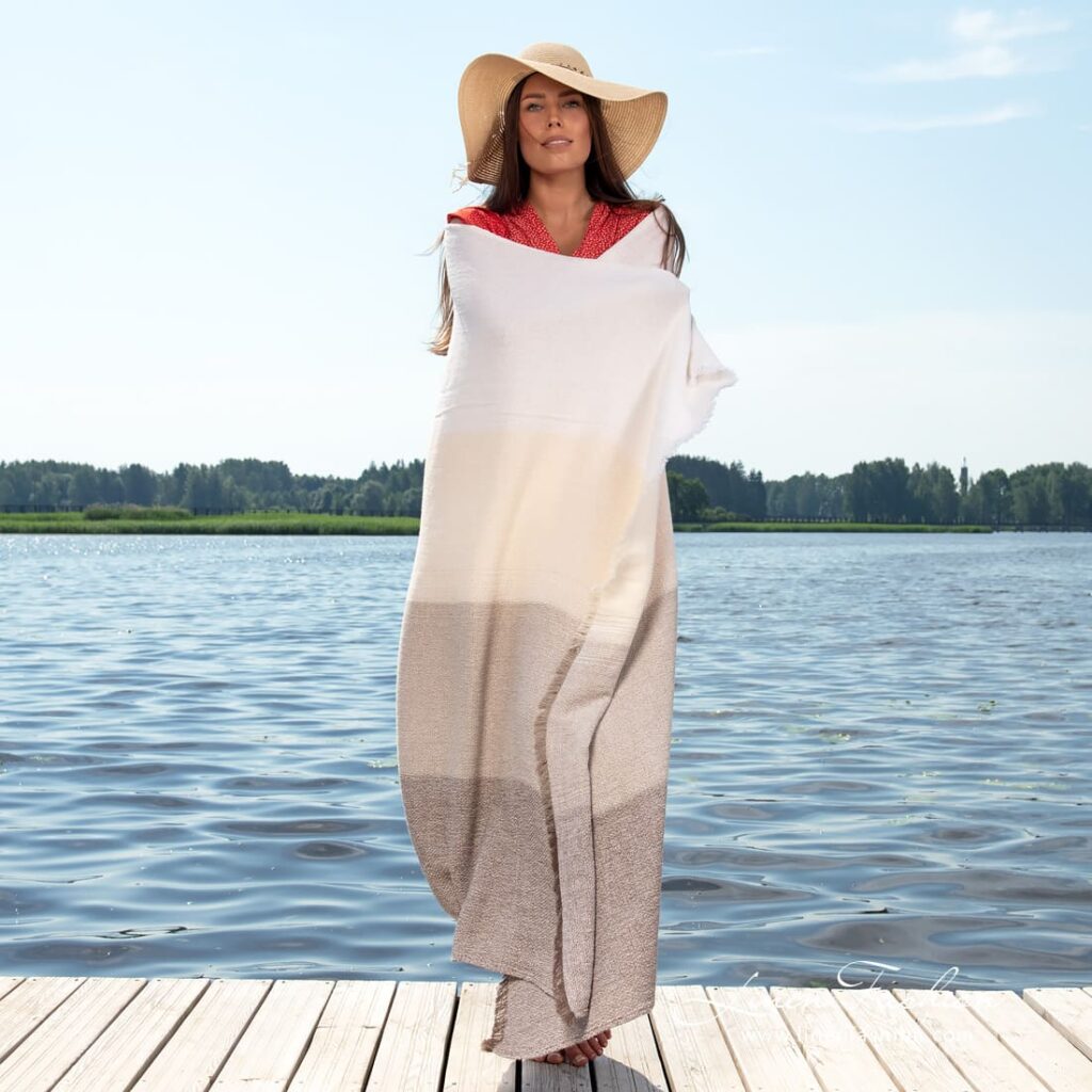 - Farba: zmes opticky bielej, svetlej krémovej, hnedej a sivo-hnedej priadze