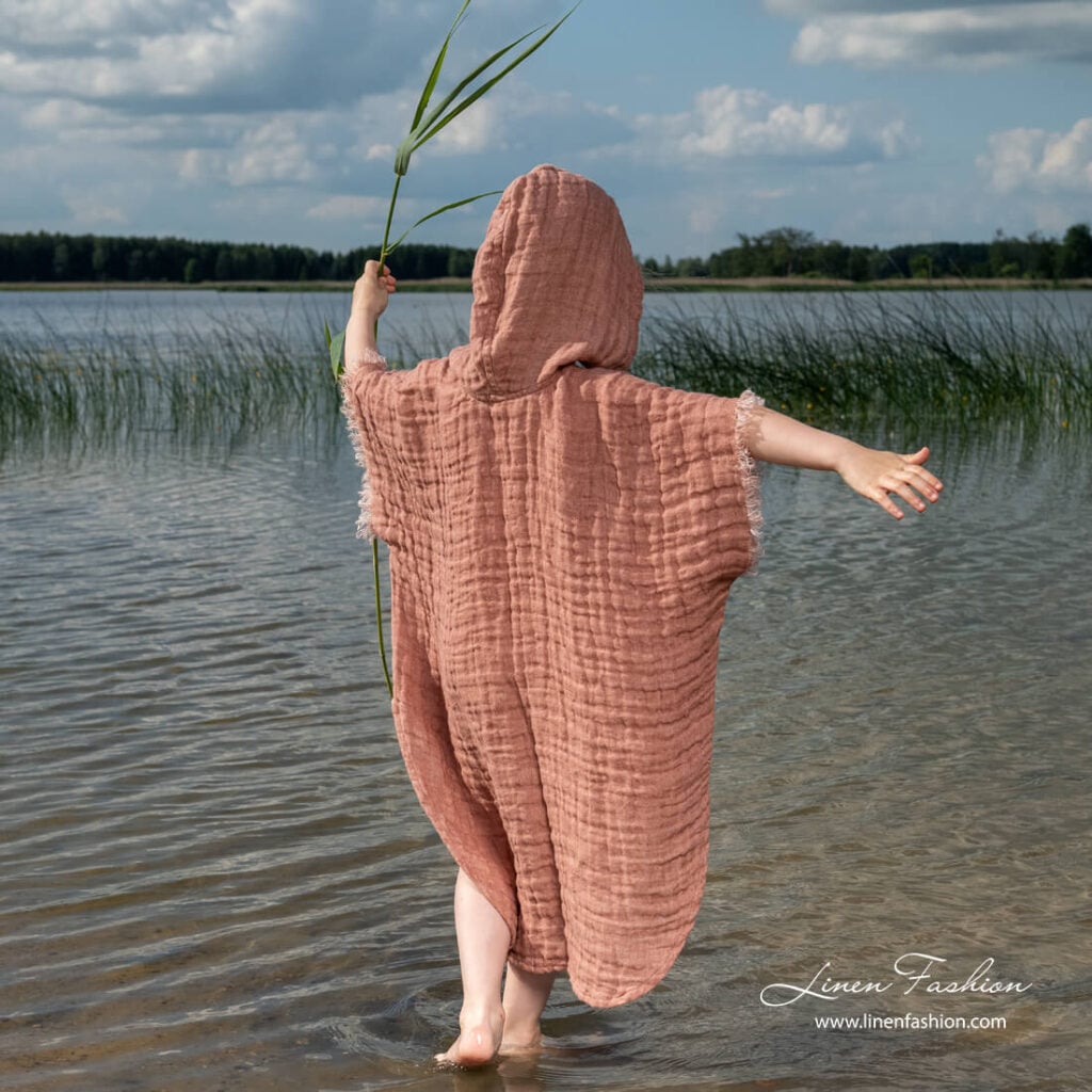 - Model produktu: s kapucňou, veľkým vreckom vpredu, predĺženou zadnou časťou, strapcami na rukávoch