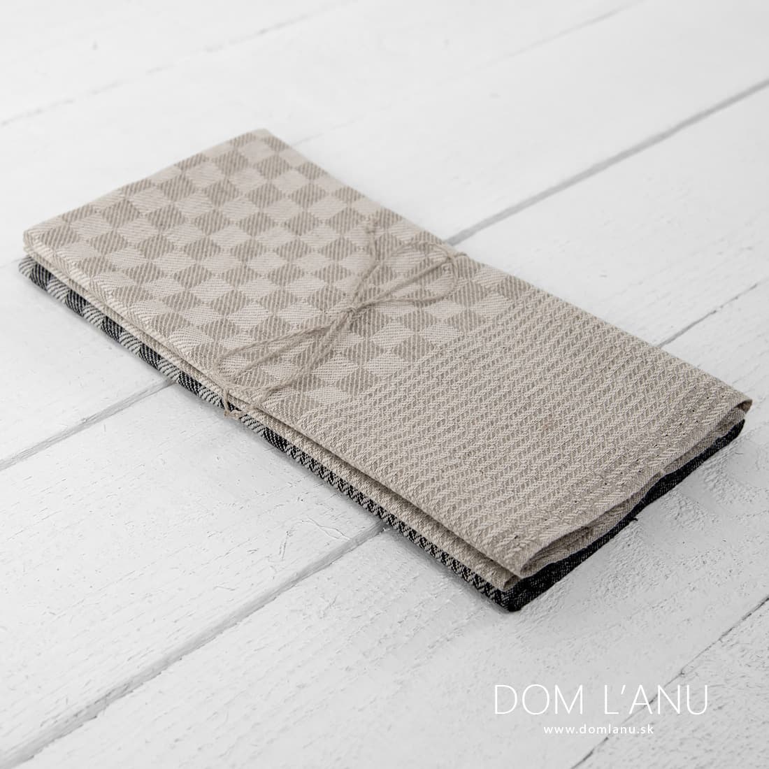 - Farba: jeden tkaný v diagonálnych pásoch bielej a prírodnej (nefarbenej, hnedosivej) priadze, druhý v škatuľkách z bielej a čiernej priadze