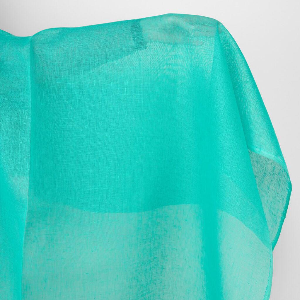 Ľanová tkanina priesvitná jasná tyrkysovo zelená