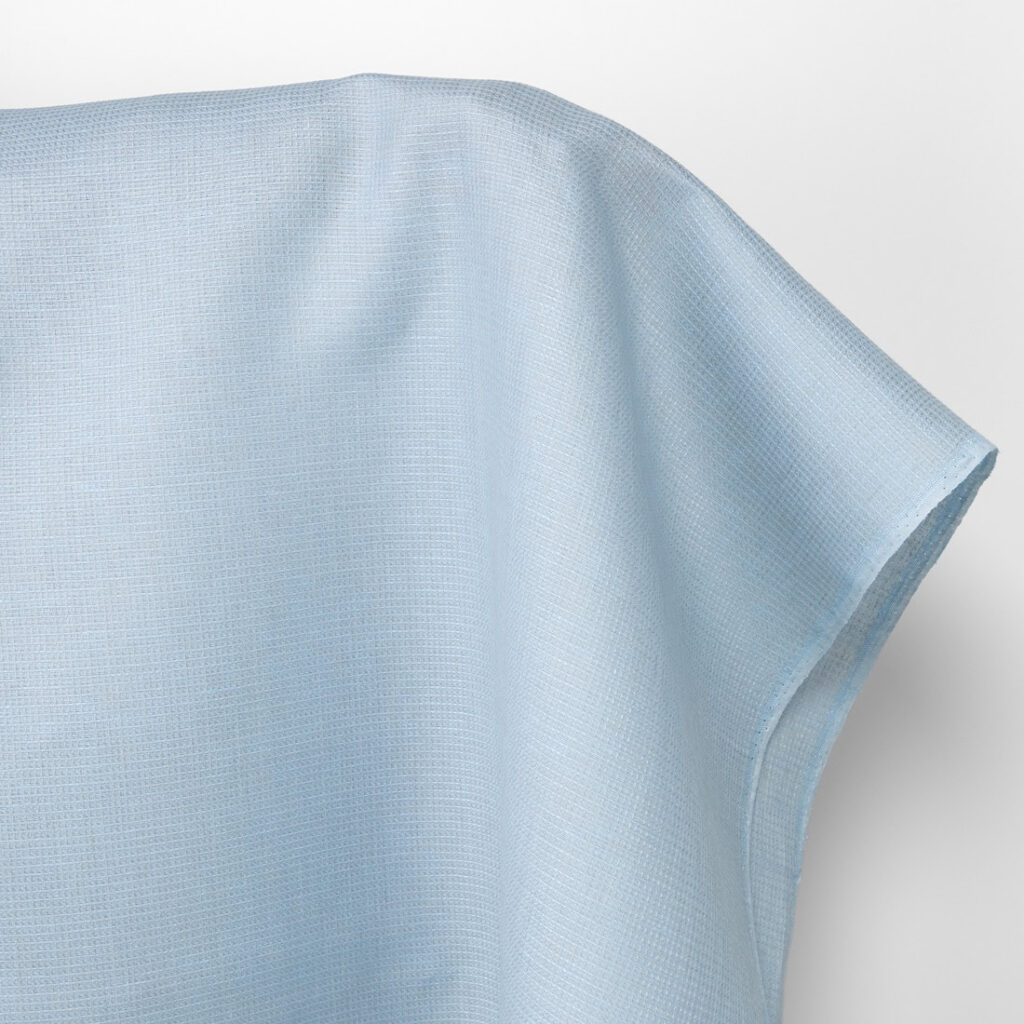Ľanová látka bledo sivo-modrá vafľová