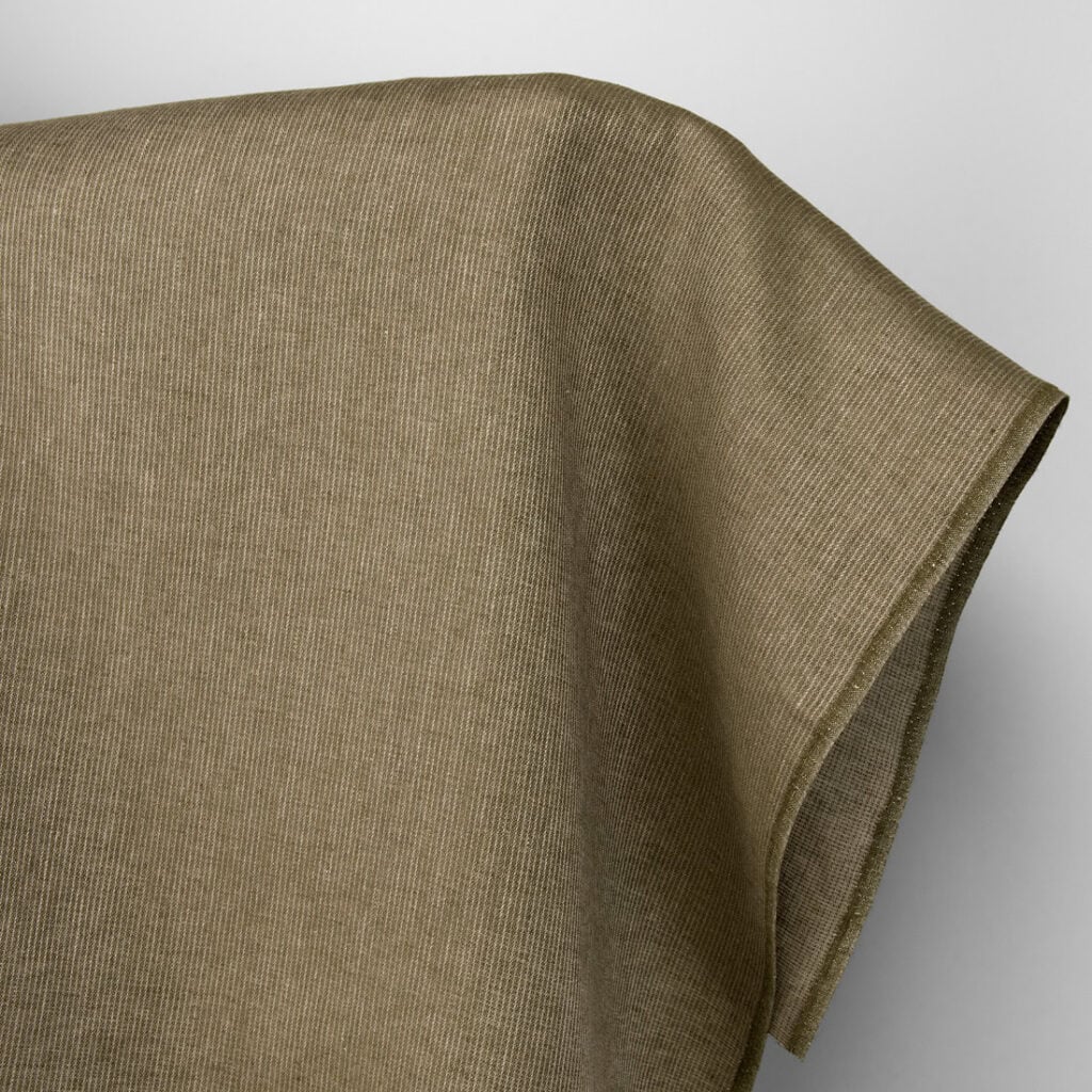 Ľanová látka machovo hnedá pruhovaná