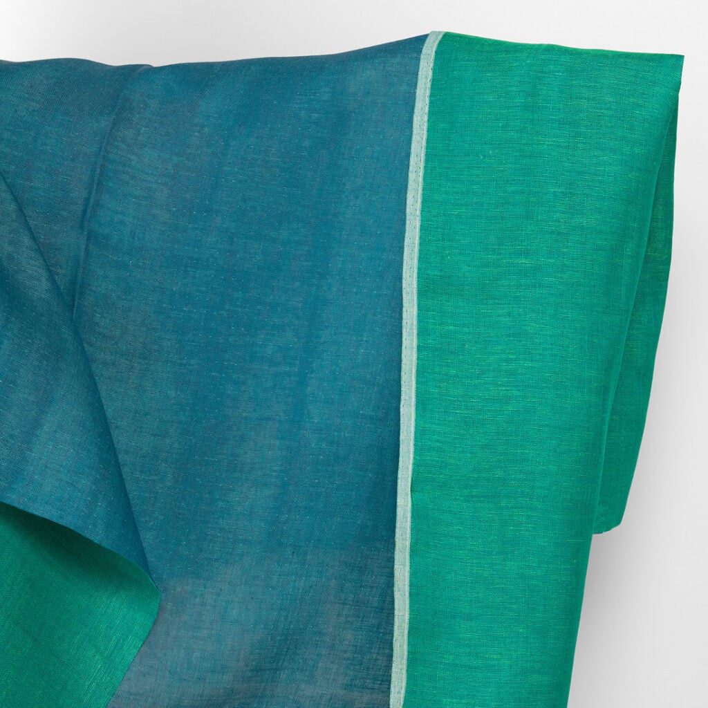 Ľanová látka obojstranná modrá a studená zelená