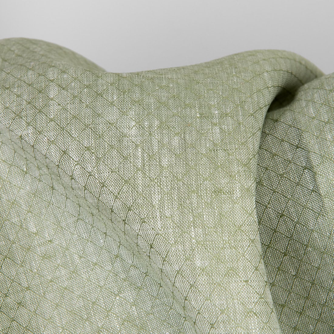 Ľanová látka bledá šalviovo zelená kosoštvorcový vzor