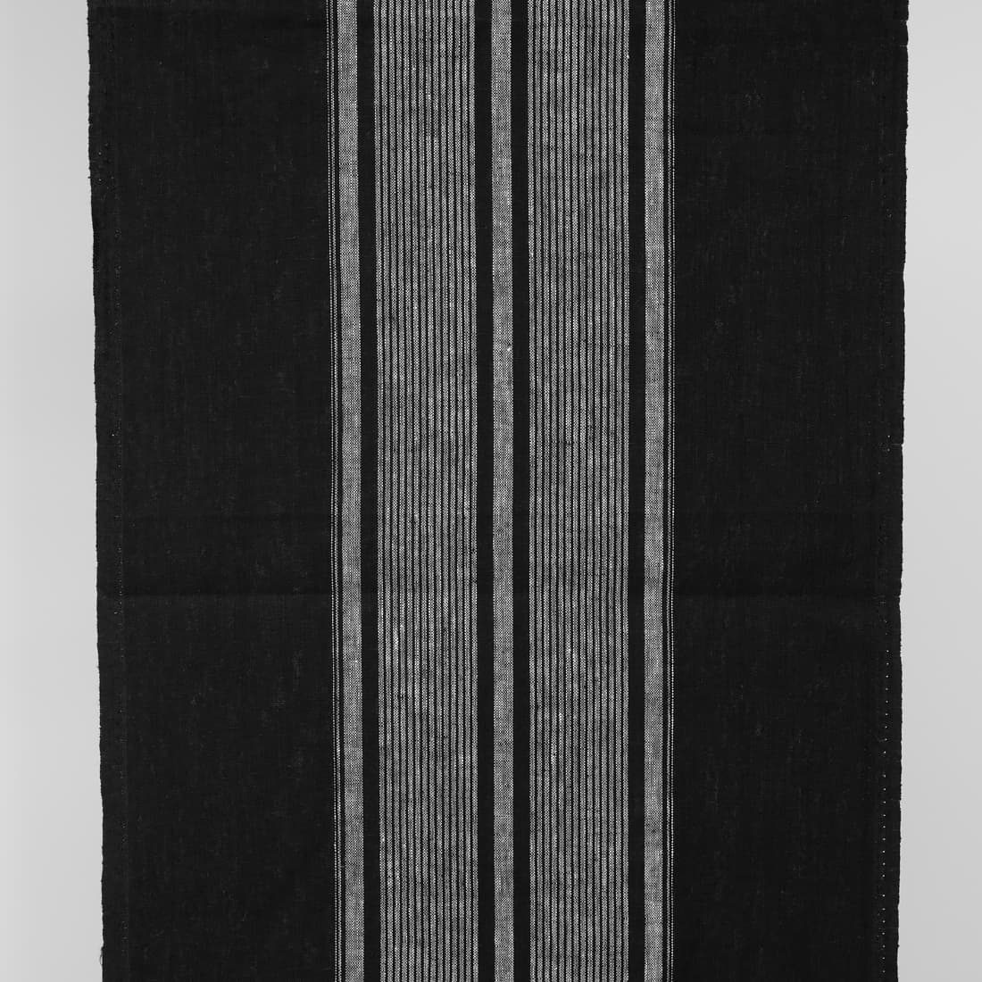 Úzka ľanová tkanina čiernej farby s bielymi stredovými pruhmi