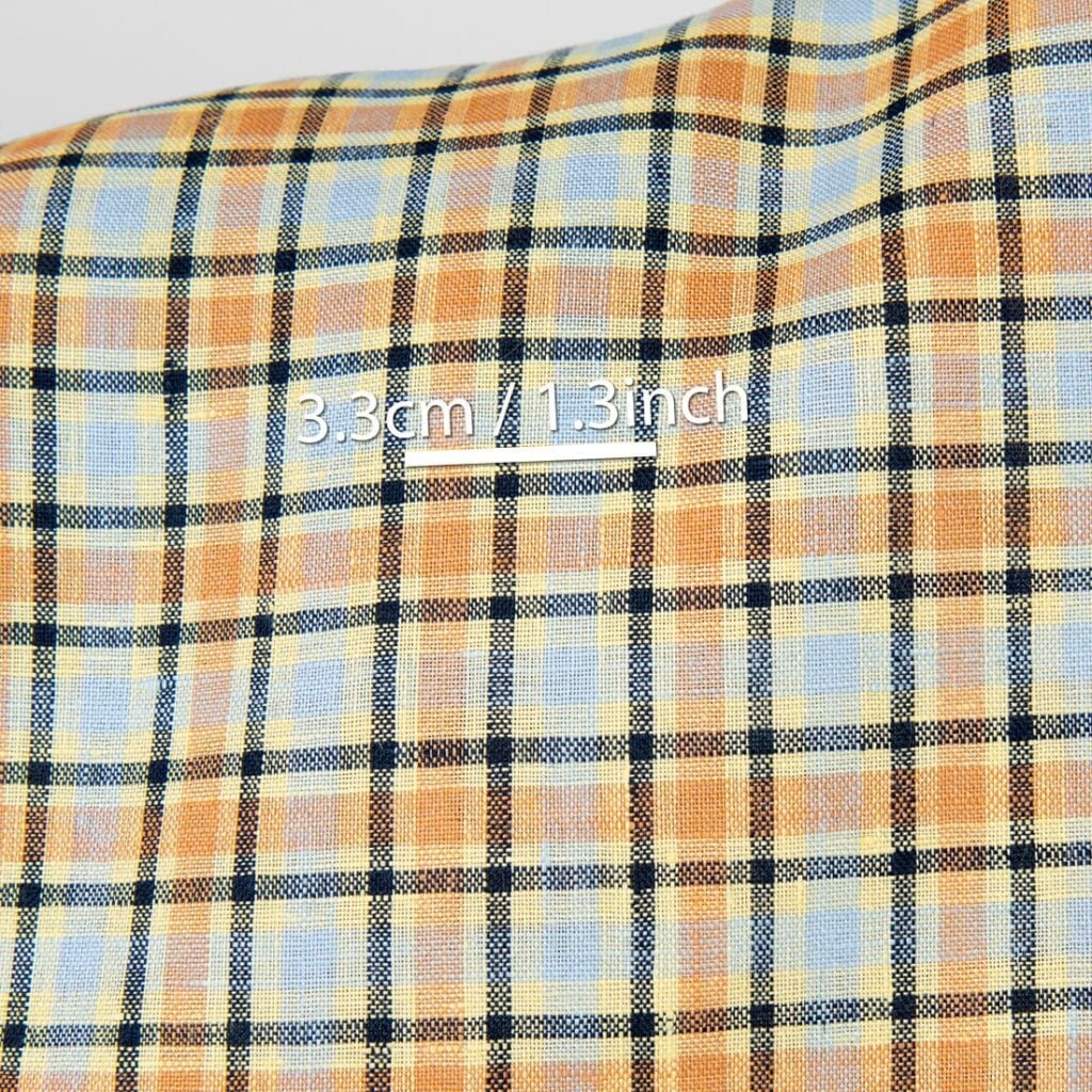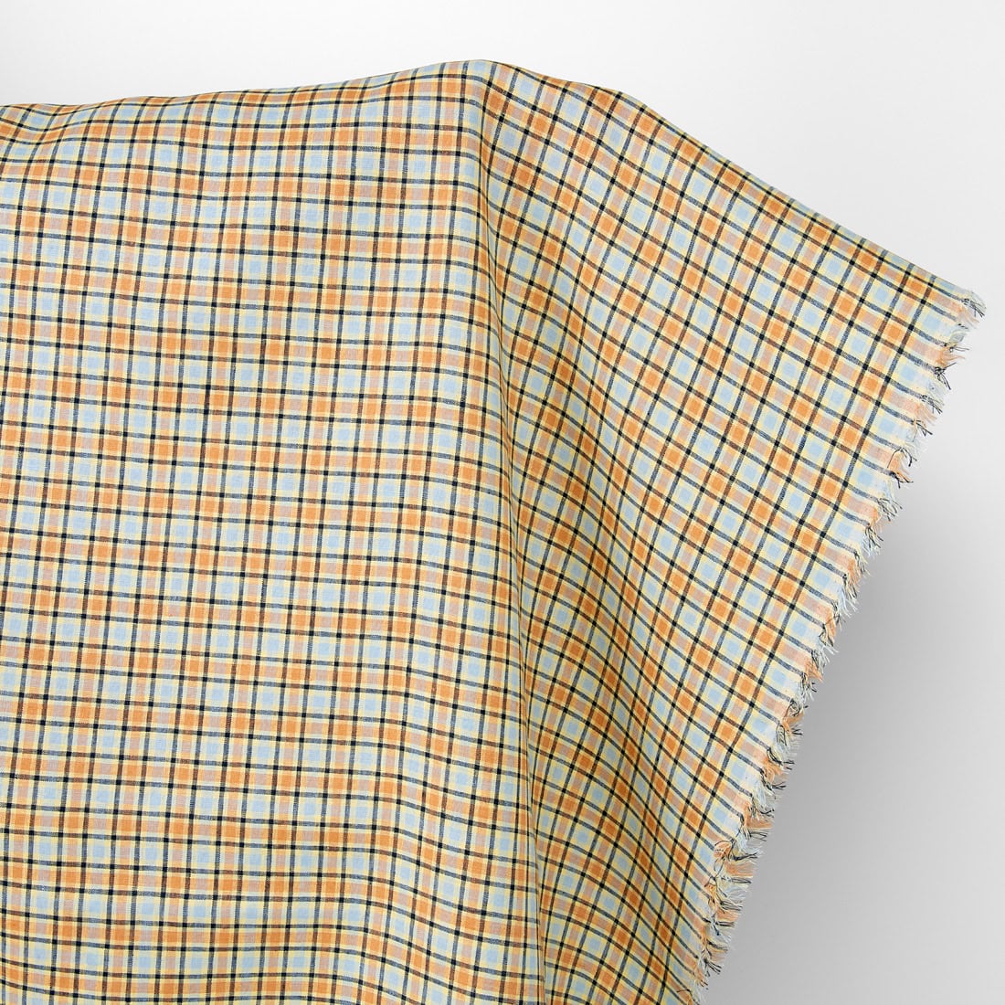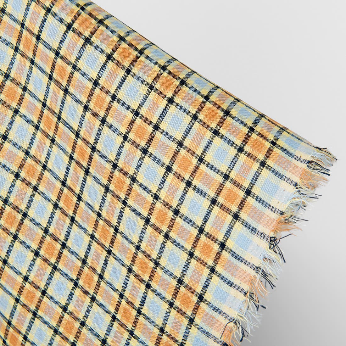 množstvo Ľanová látka oranžové a bledo modré kocky