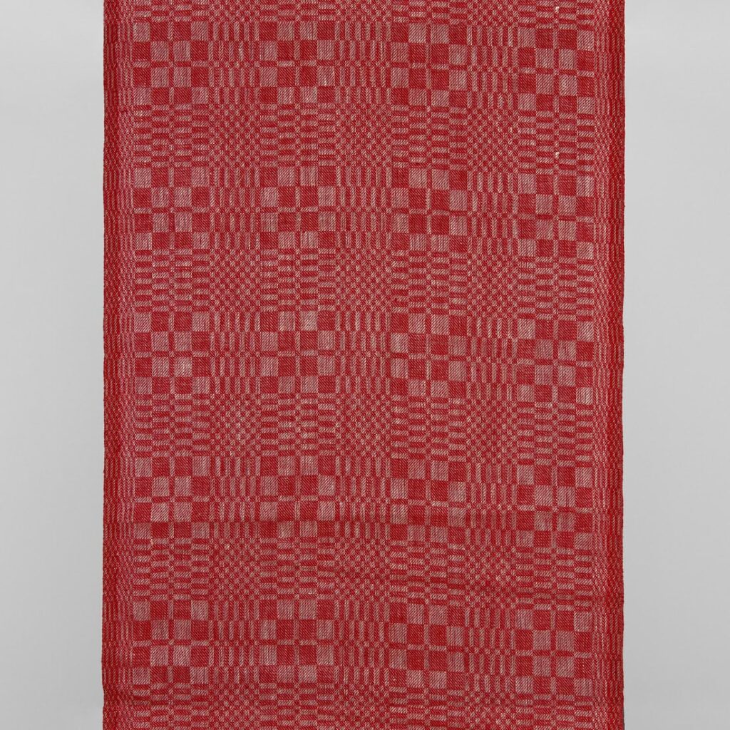Úzka ľanová tkanina červené a prírodné keprové káro