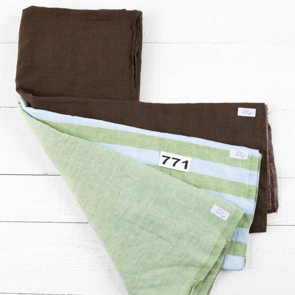 Praná žlto viacfarebná pruhovaná ľanová látka