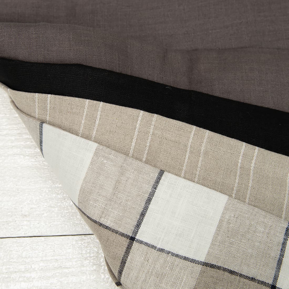 Ľanovo-bavlnená tkanina čierno-biela saténová obojstranná