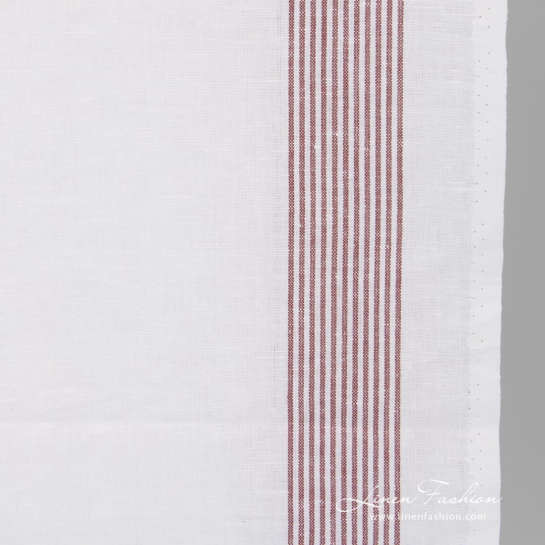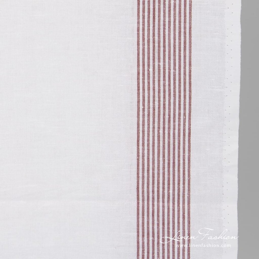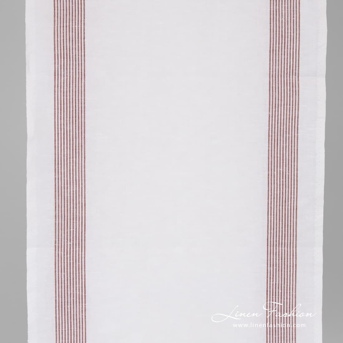 Biela úzka ľanovo-bavlnená tkanina s tenkými hnedými prúžkami