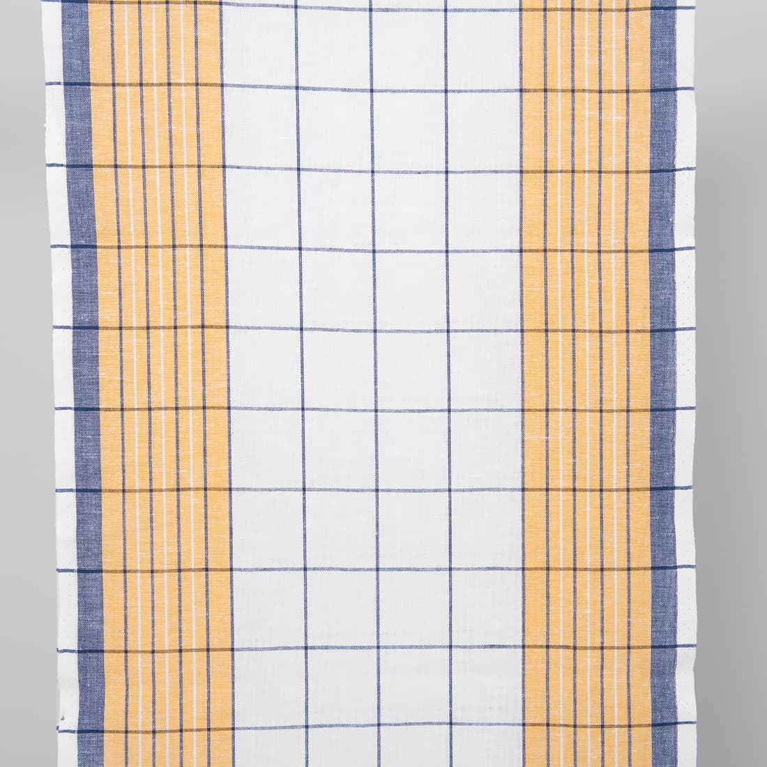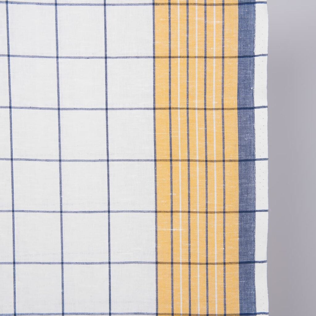 množstvo Úzka ľanovo-bavlnená tkanina v kockách biela žltá modrá