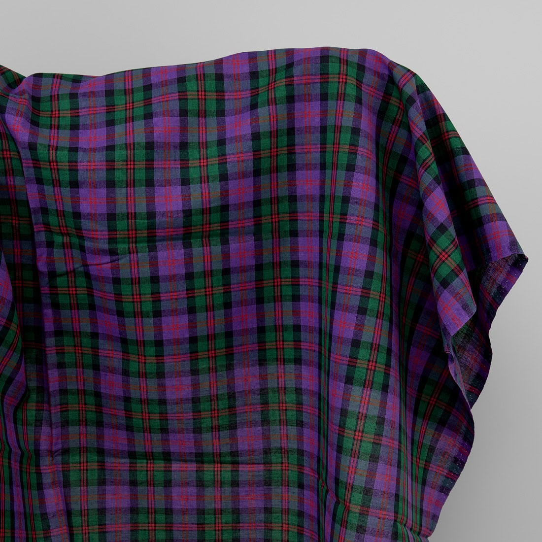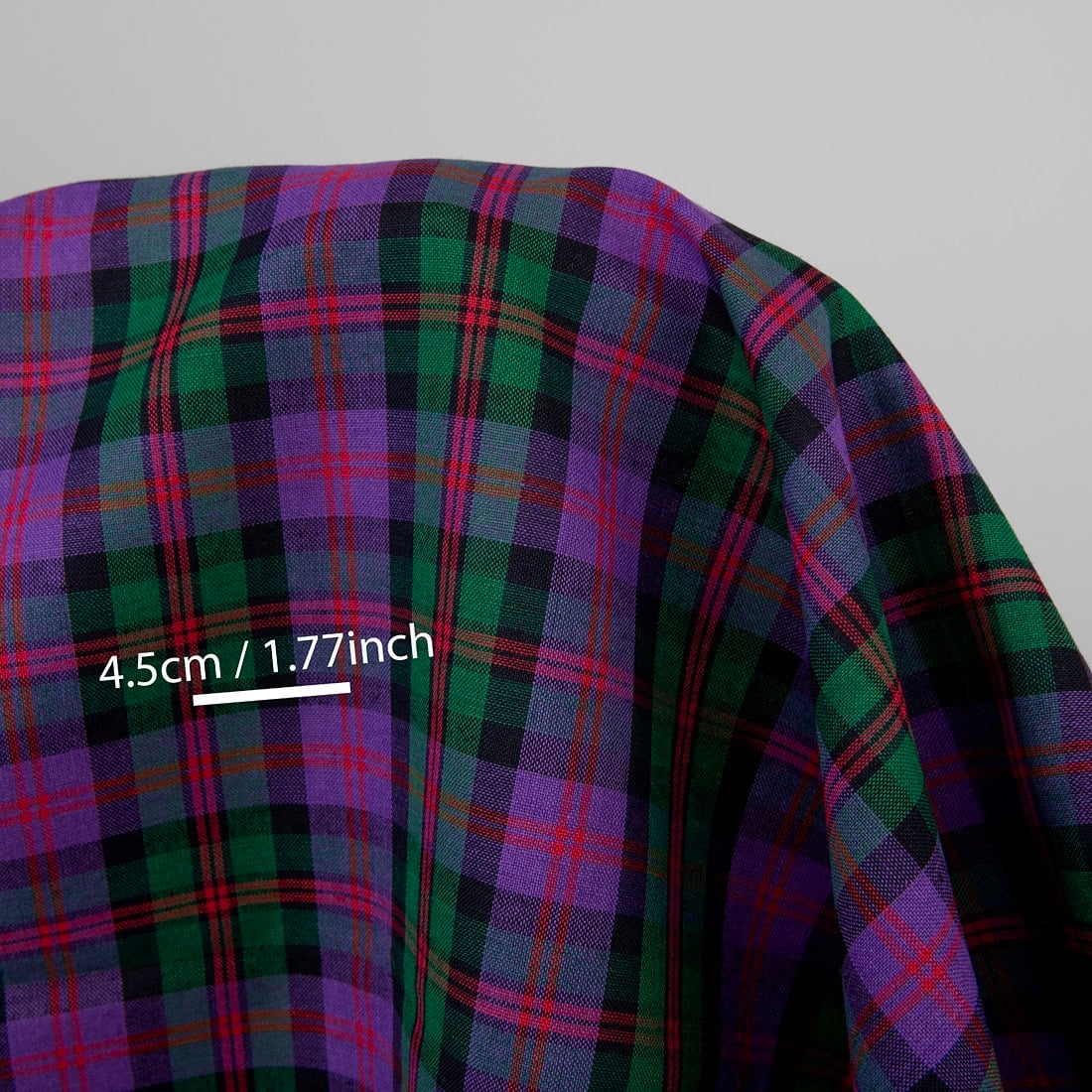množstvo Fialová a zelená kockovaná ľanovo-bavlnená tkanina
