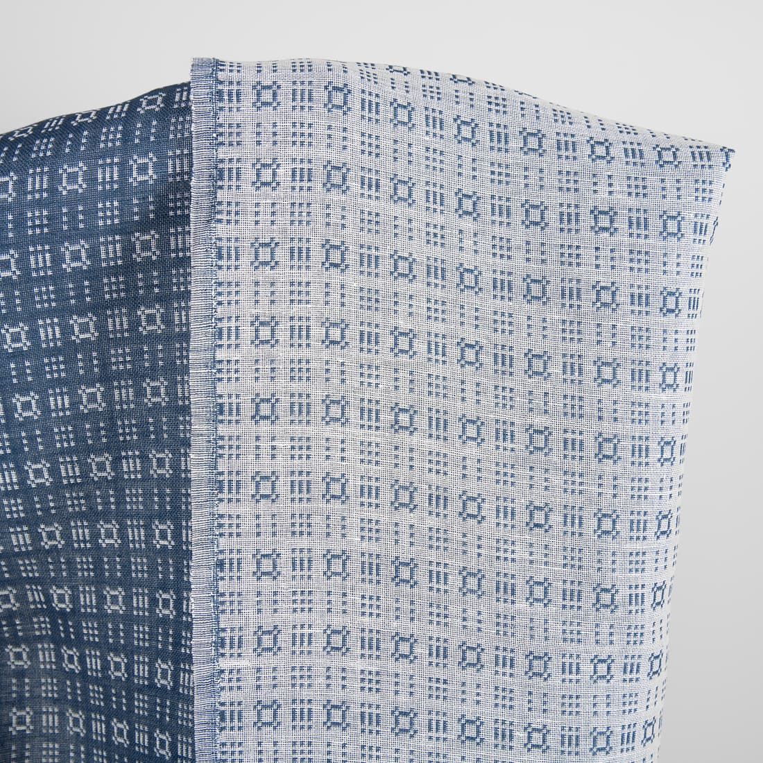 Ľanovo-bavlnená tkanina biela a tmavomodrá geometrický vzor