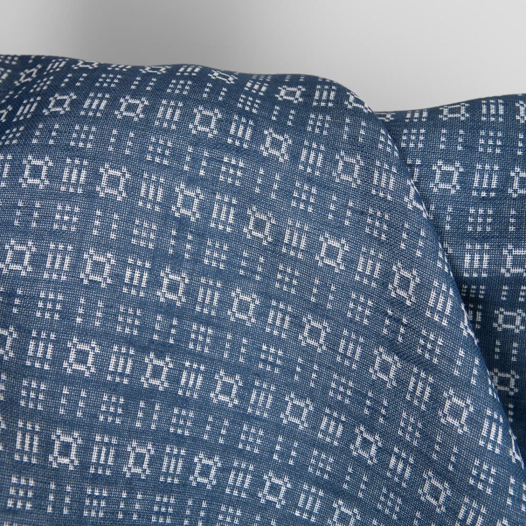 množstvo Ľanovo-bavlnená tkanina biela a tmavomodrá geometrický vzor