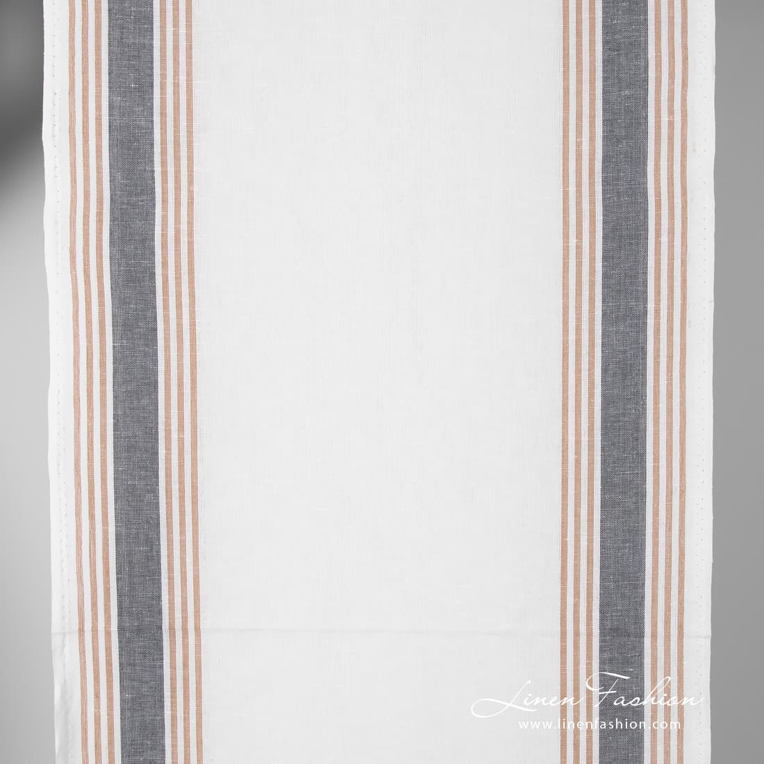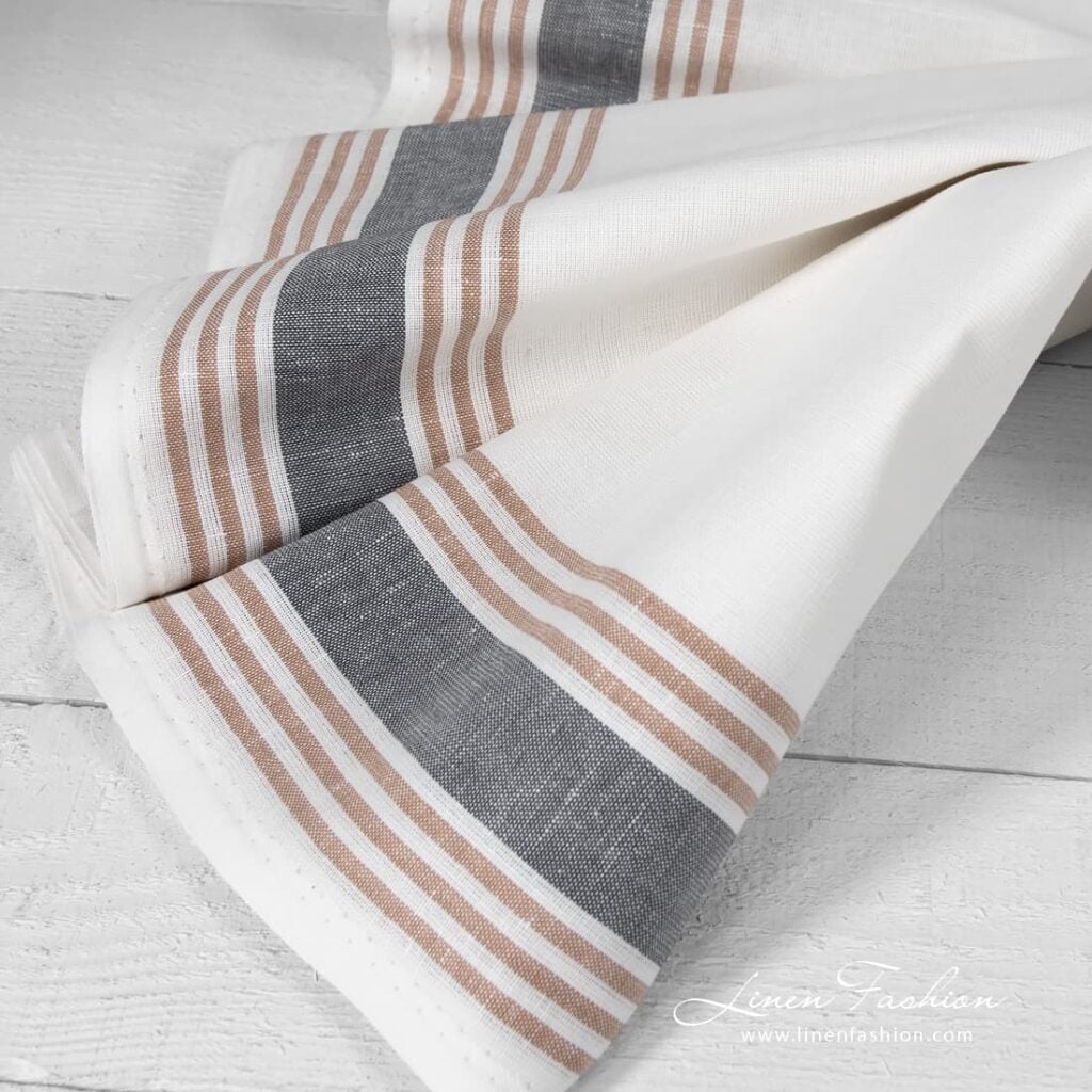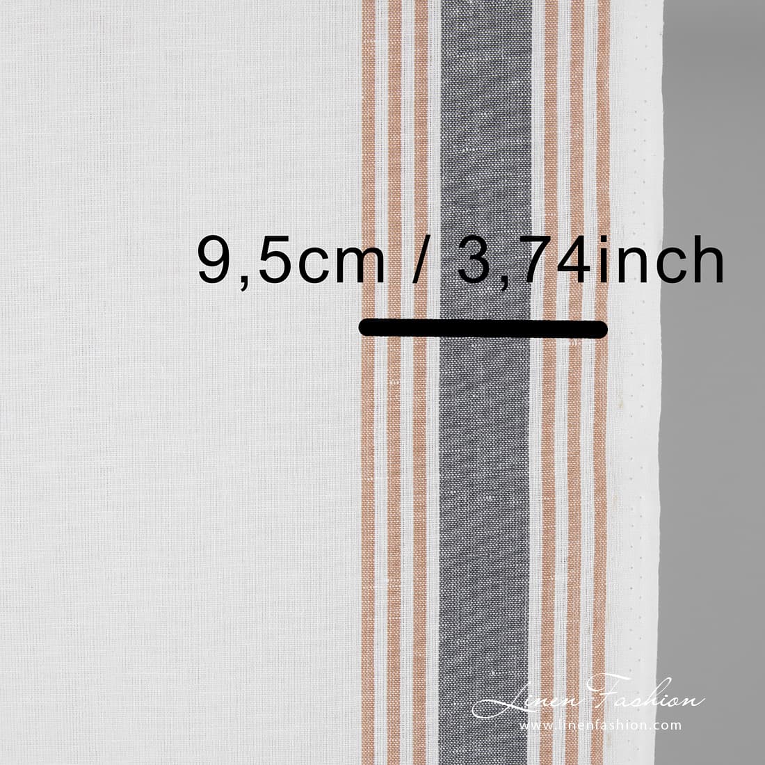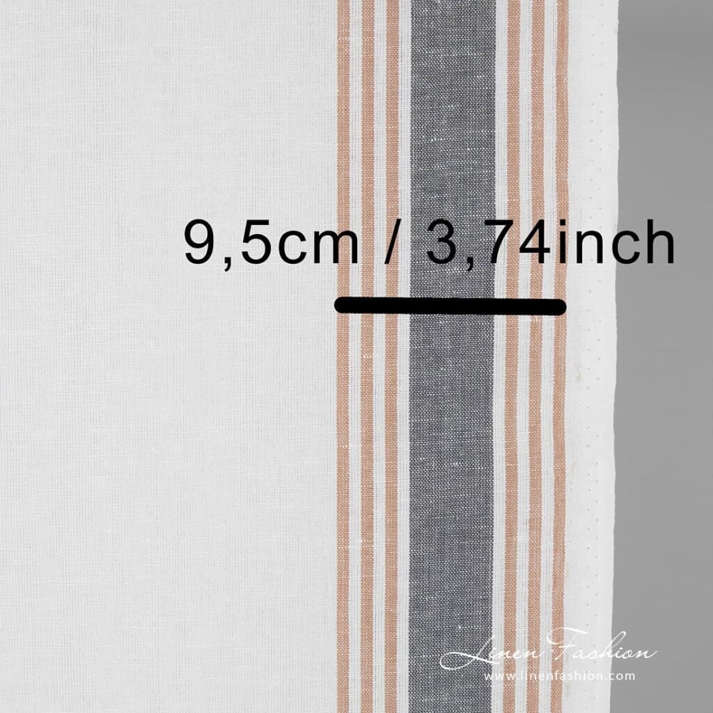 množstvo Smotanovo biela ľanovo-bavlnená tkanina so sivými pruhmi