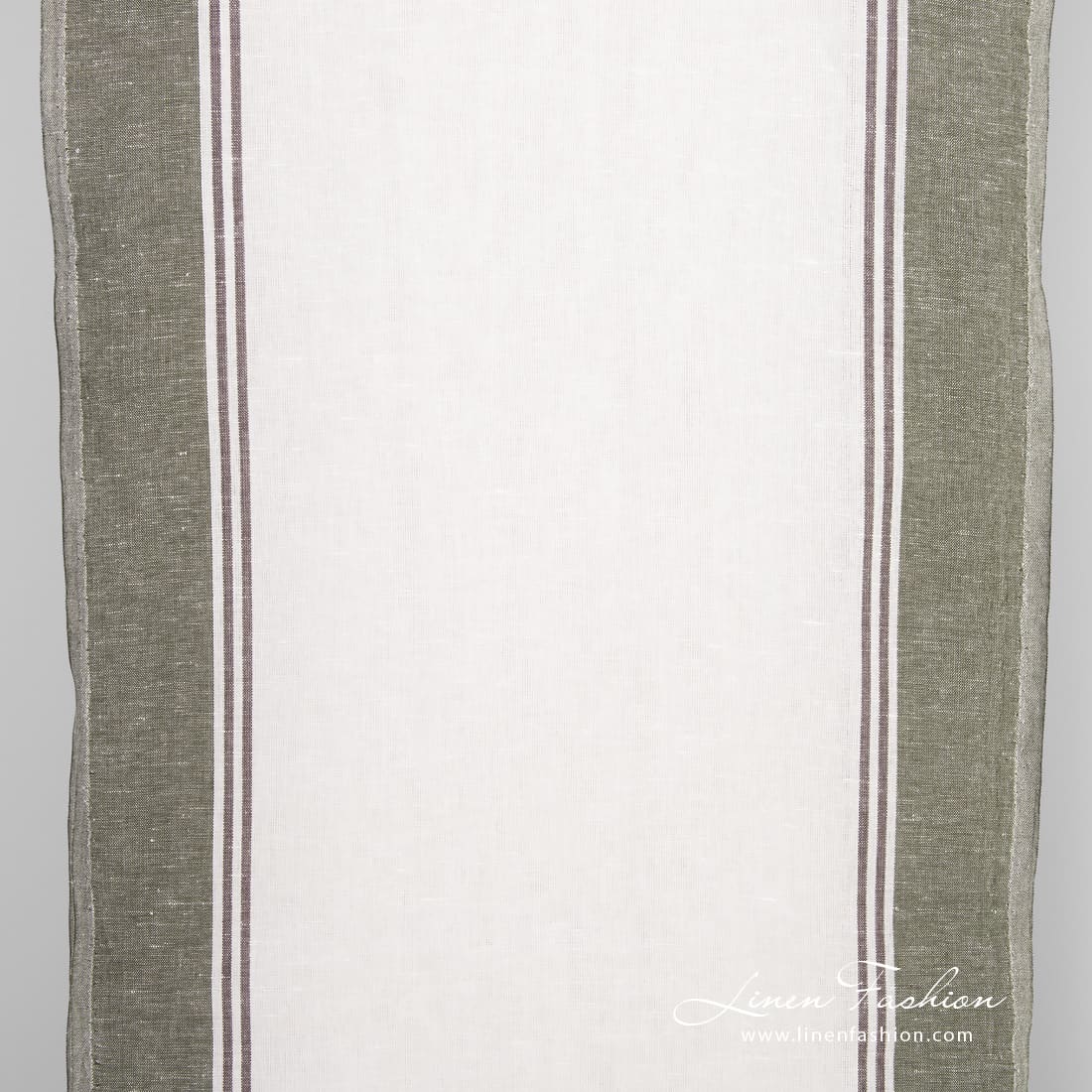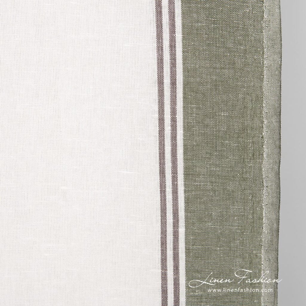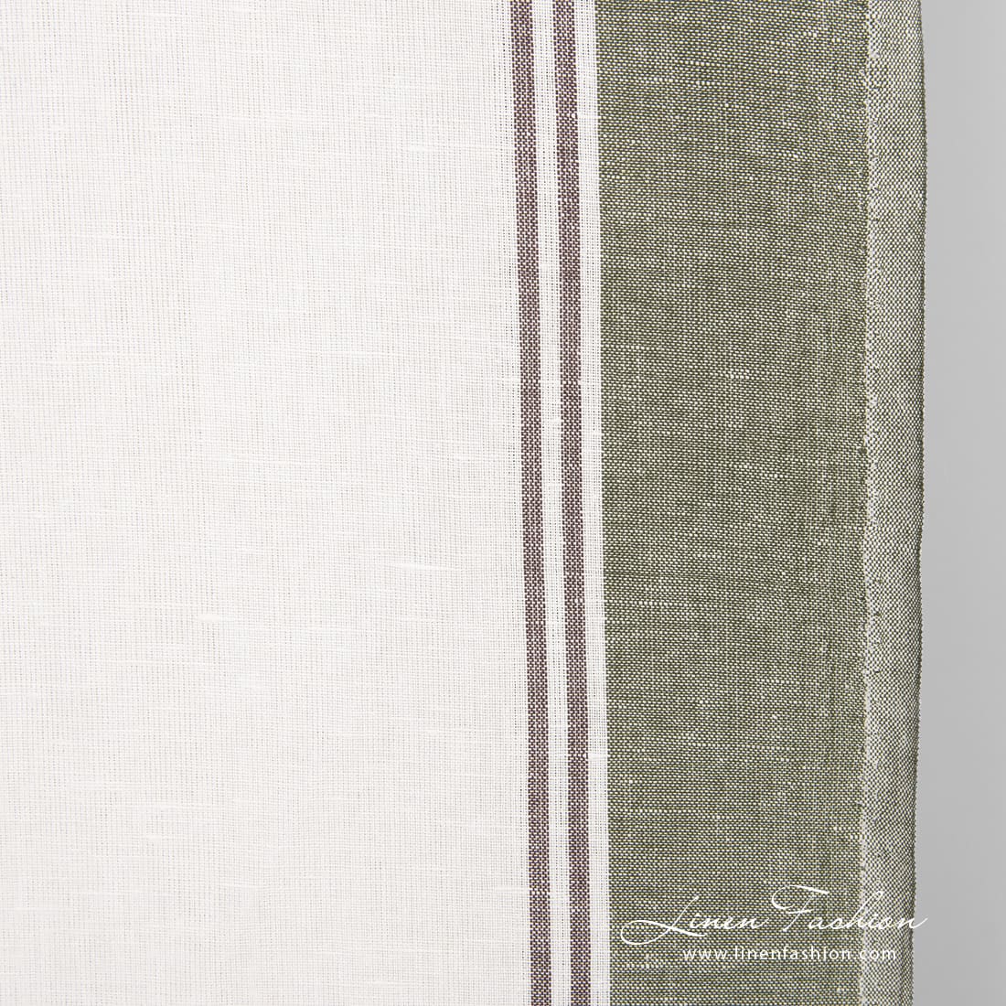 Ľanovo-bavlnená tkanina so zelenými a hnedými pruhmi