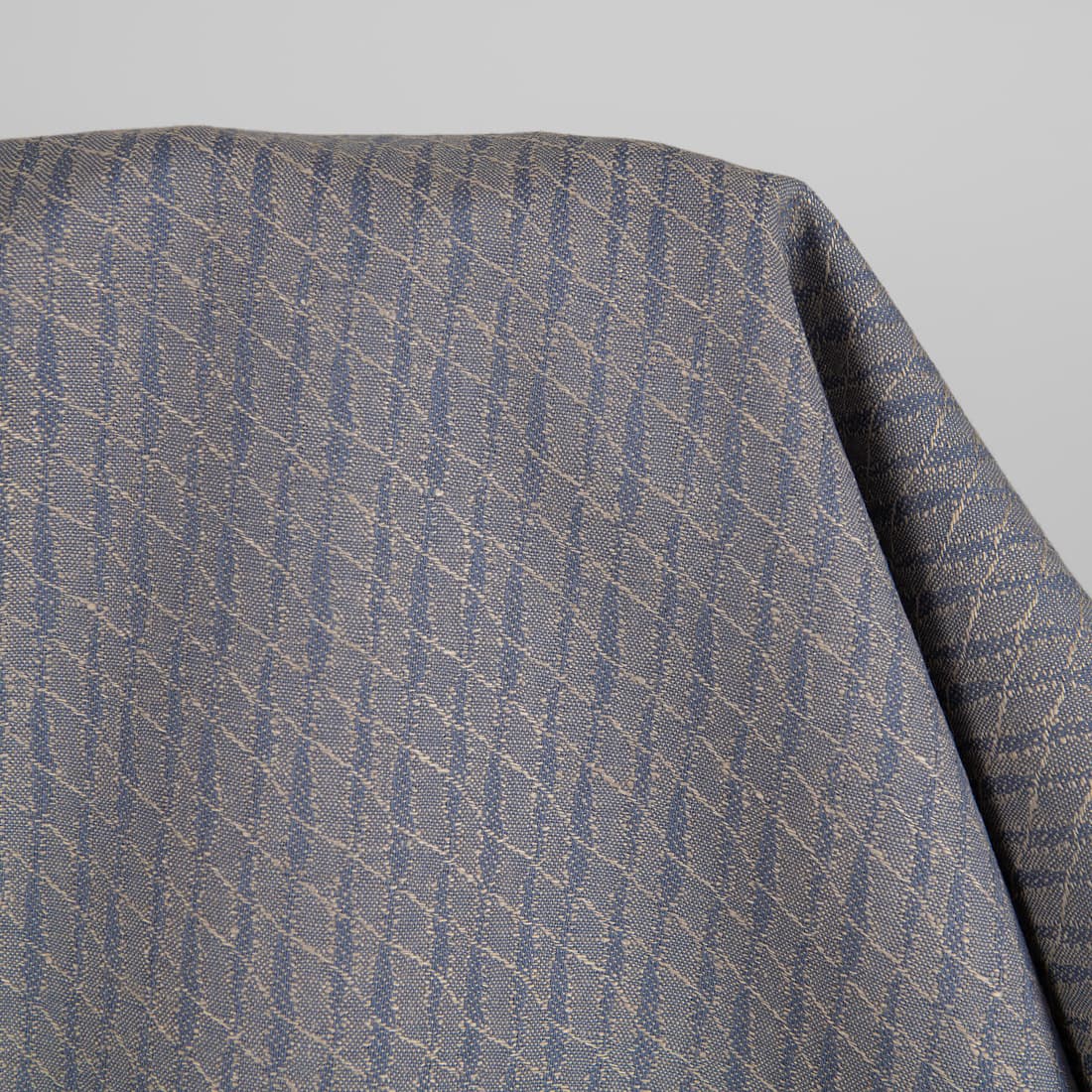 množstvo Ľanovo-bavlnená tkanina modrohnedá vzorovaná