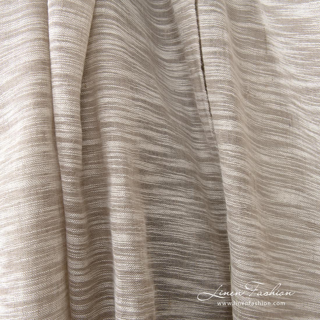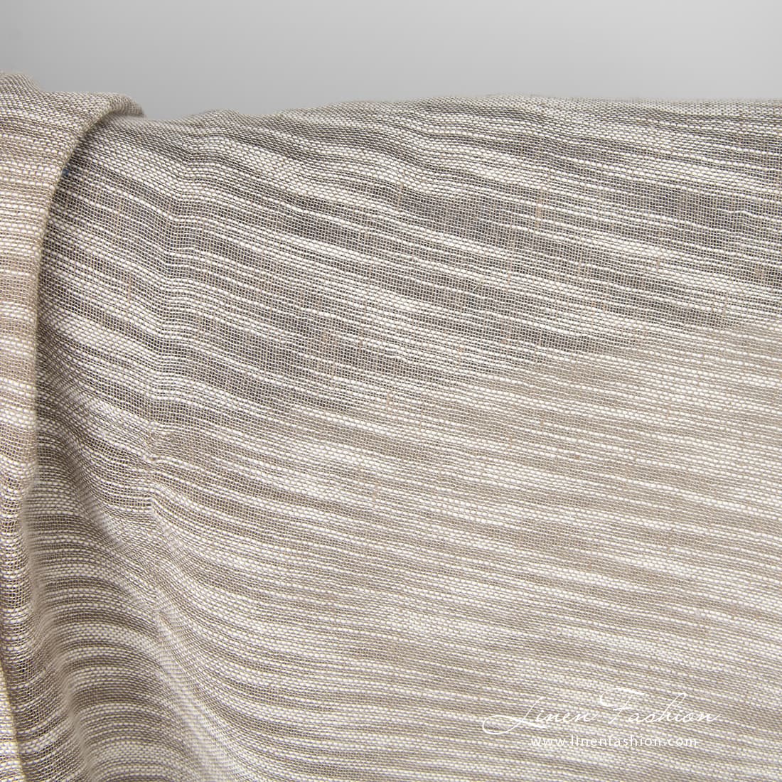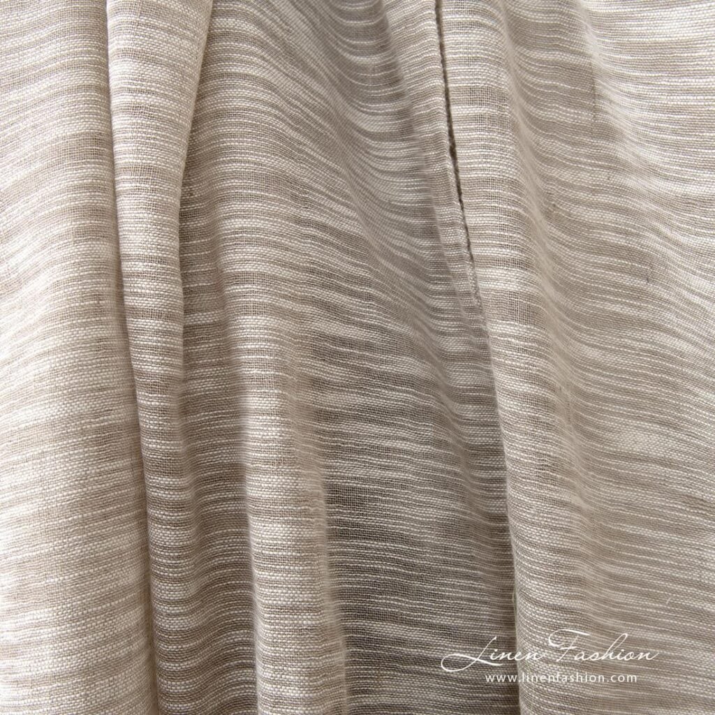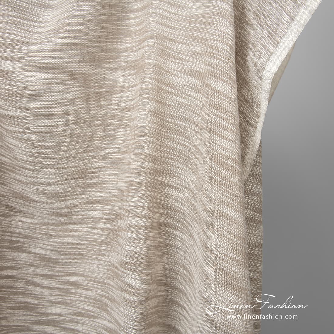 Ľanovo-bavlnená tkanina pieskovej farby s bielymi pruhmi