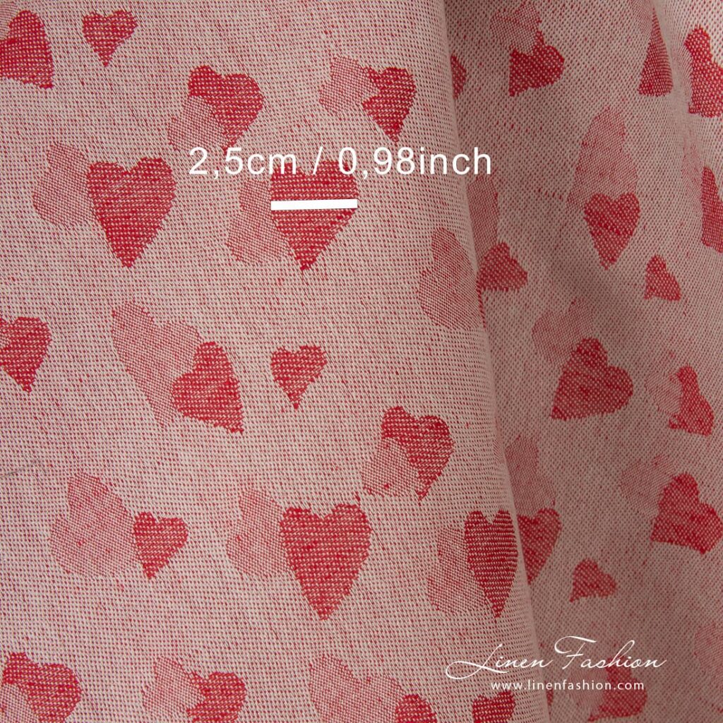 množstvo Červená poloľanová tkanina s malými srdiečkami