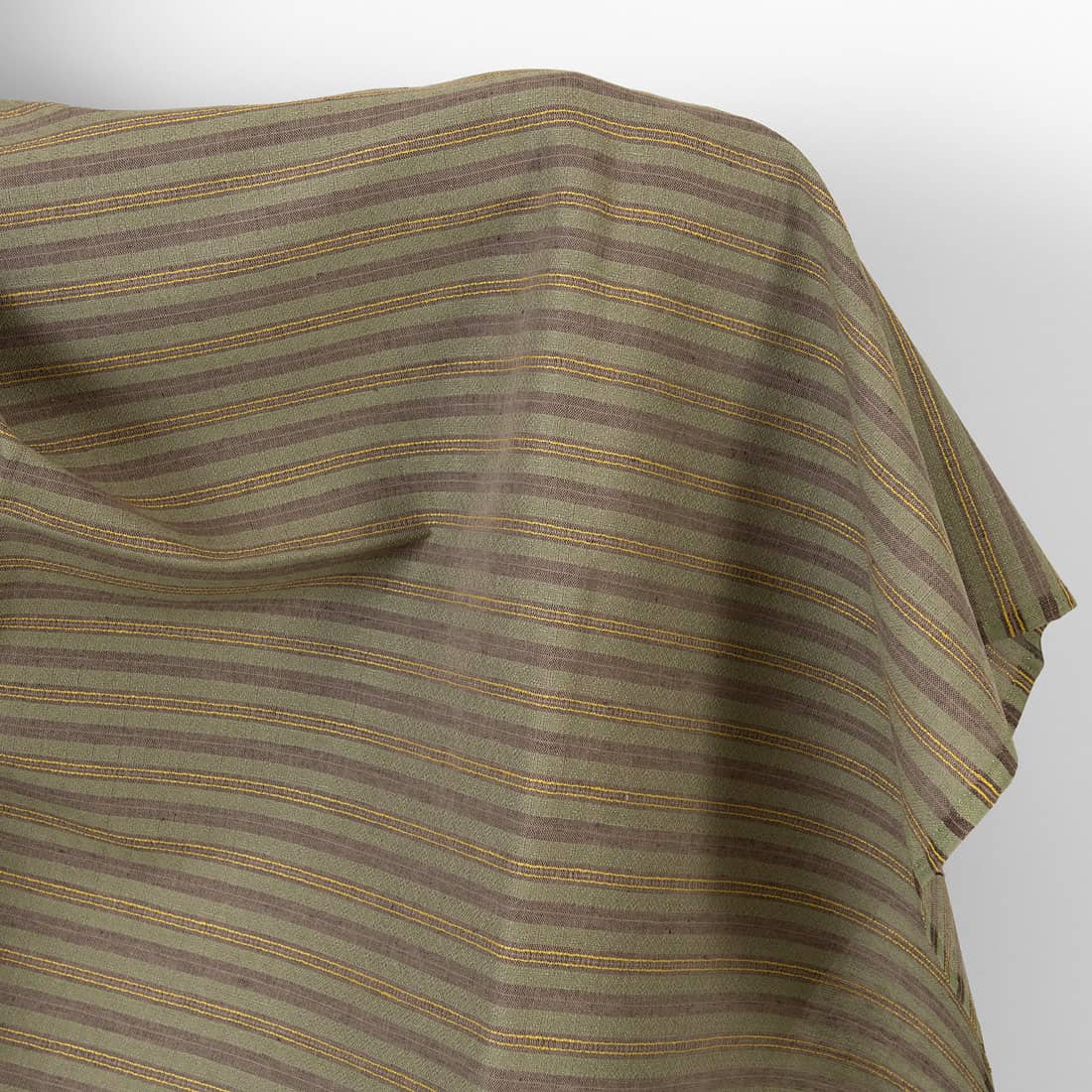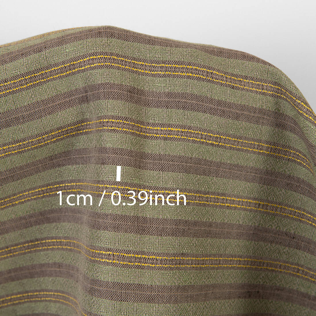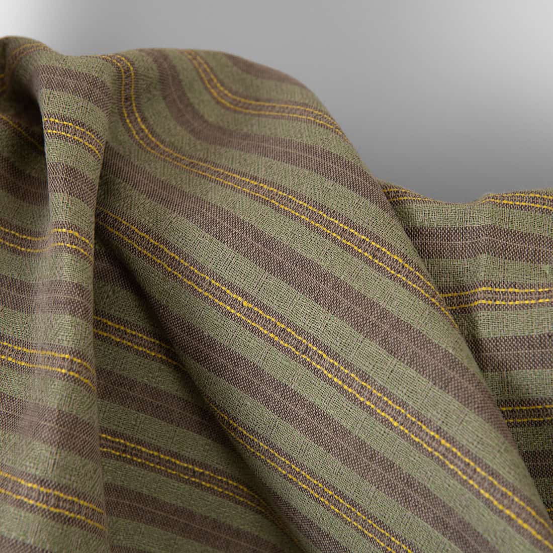 množstvo Ľanovo-bavlnená látka hnedo-zelené vzorované pruhy