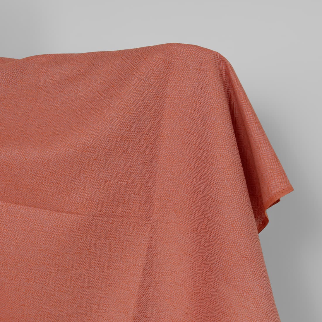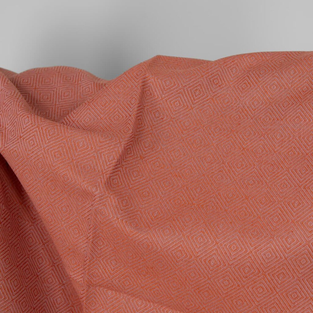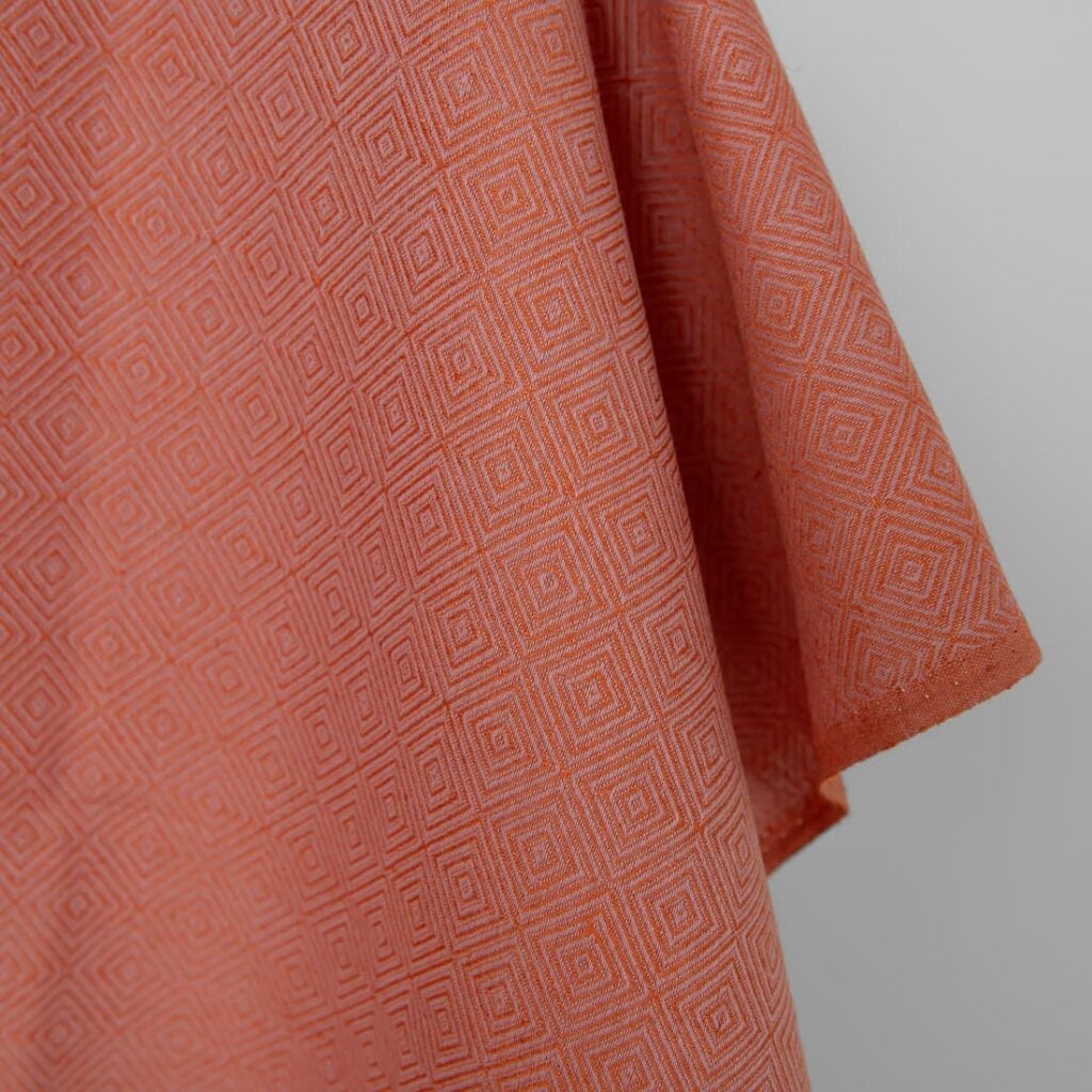 množstvo Ľanovo-bavlnená látka oranžový a fialový kosoštvorcový vzor