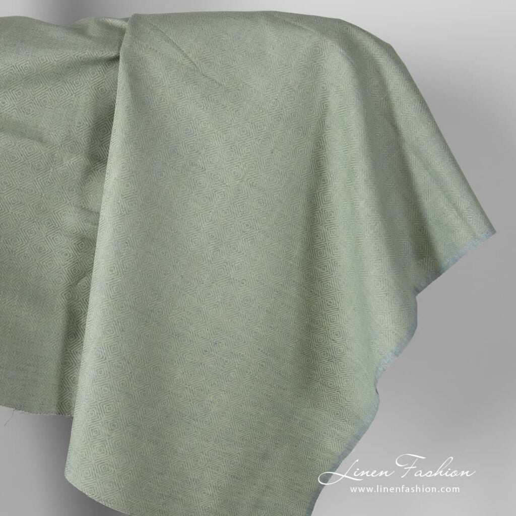 Ľanovo-bavlnená látka sivozelená diamantová väzba