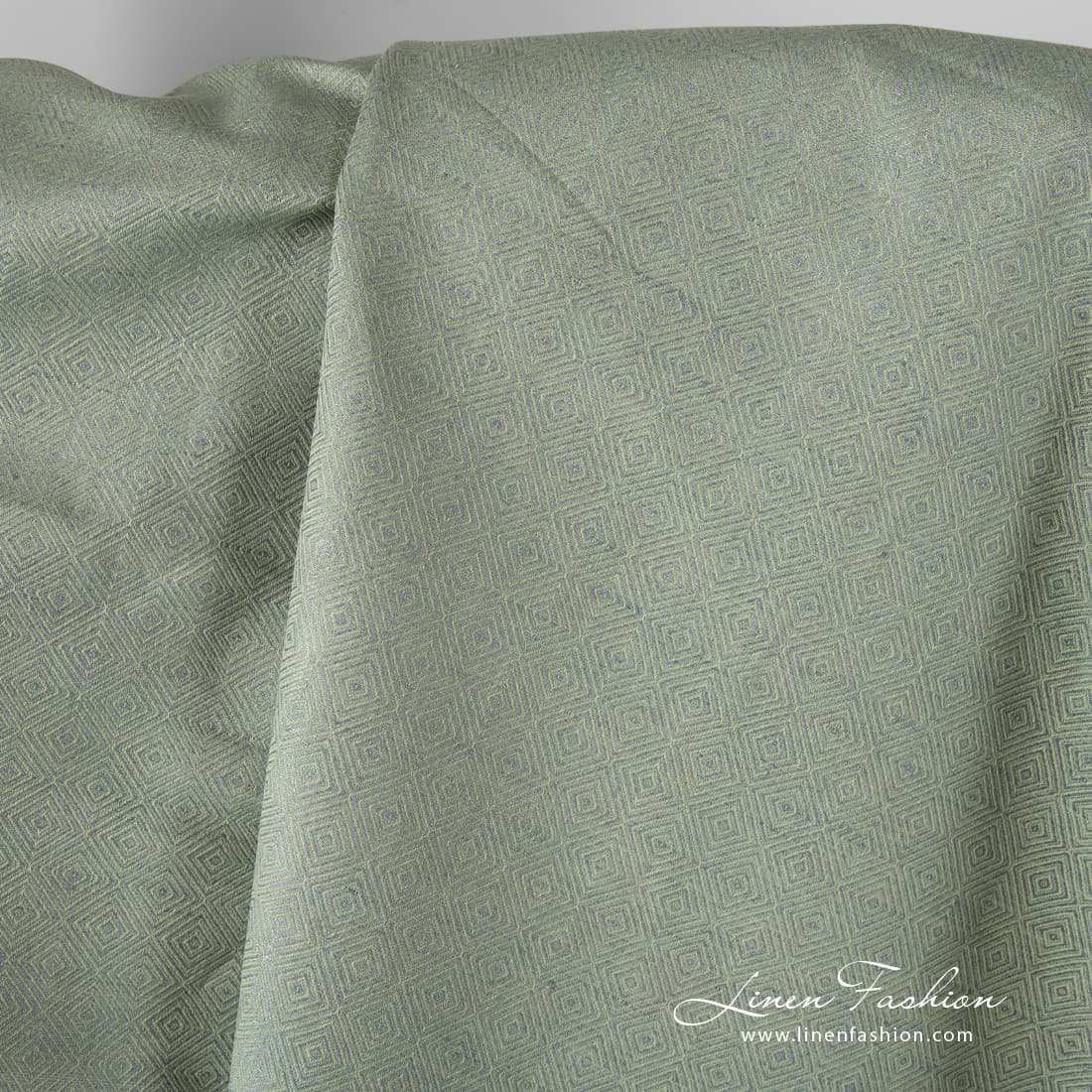 množstvo Ľanovo-bavlnená látka sivozelená diamantová väzba