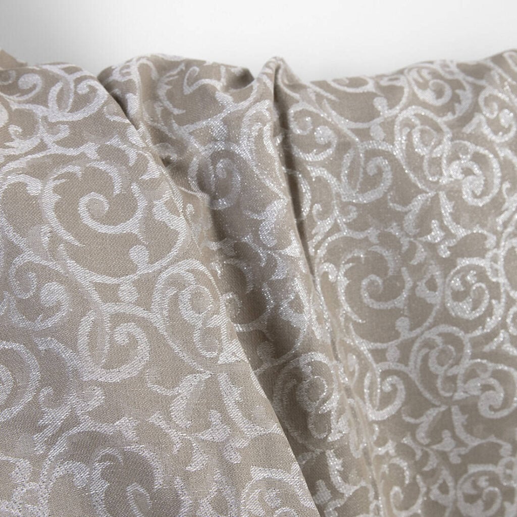 množstvo Ľanovo-bavlnená tkanina béžová a biela žakárová strieborný lurex