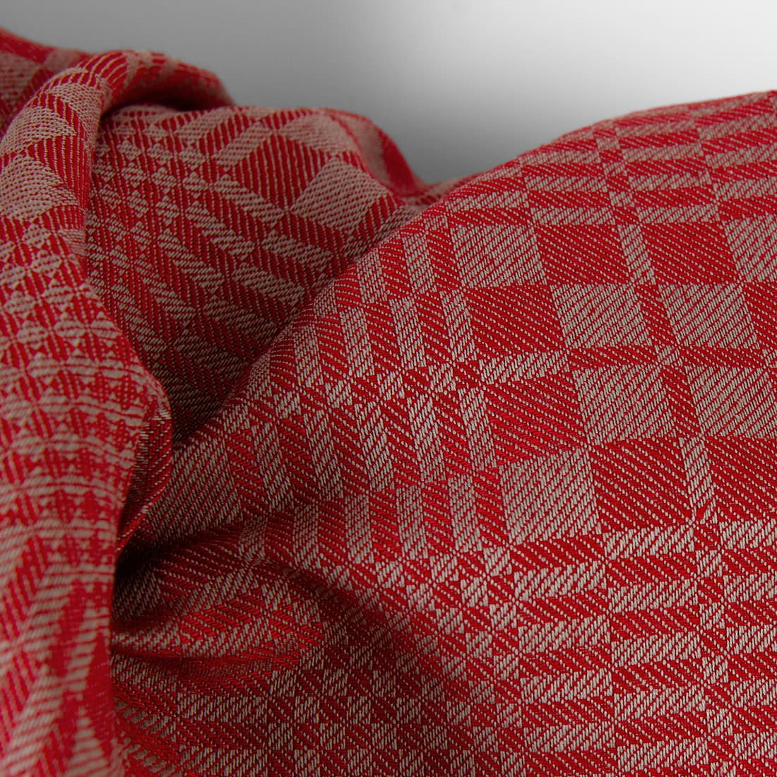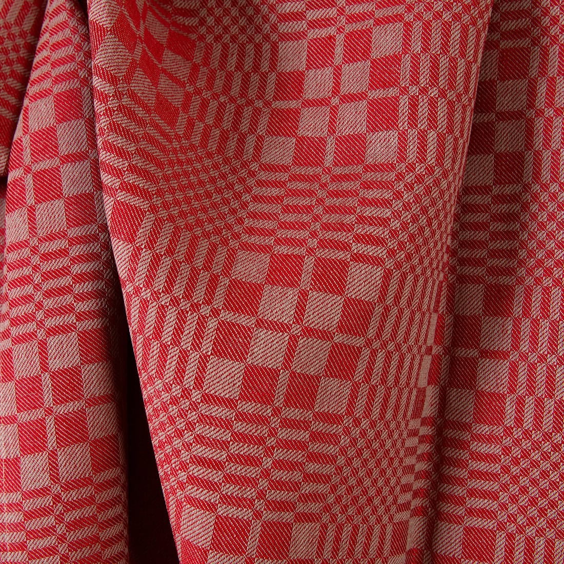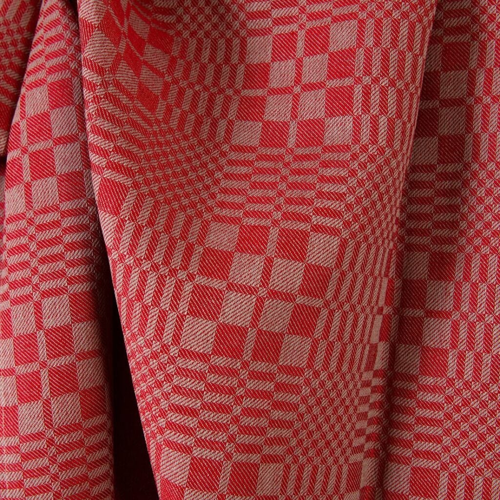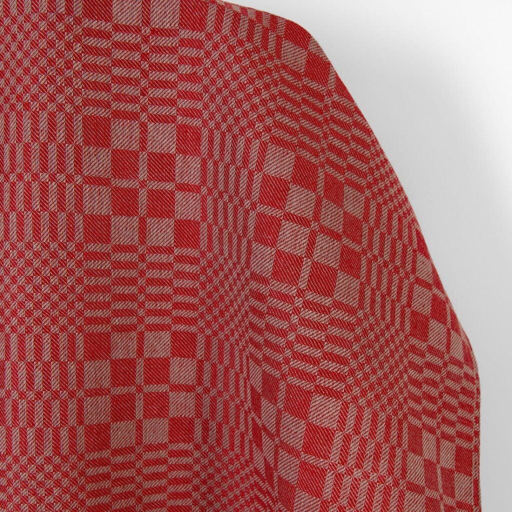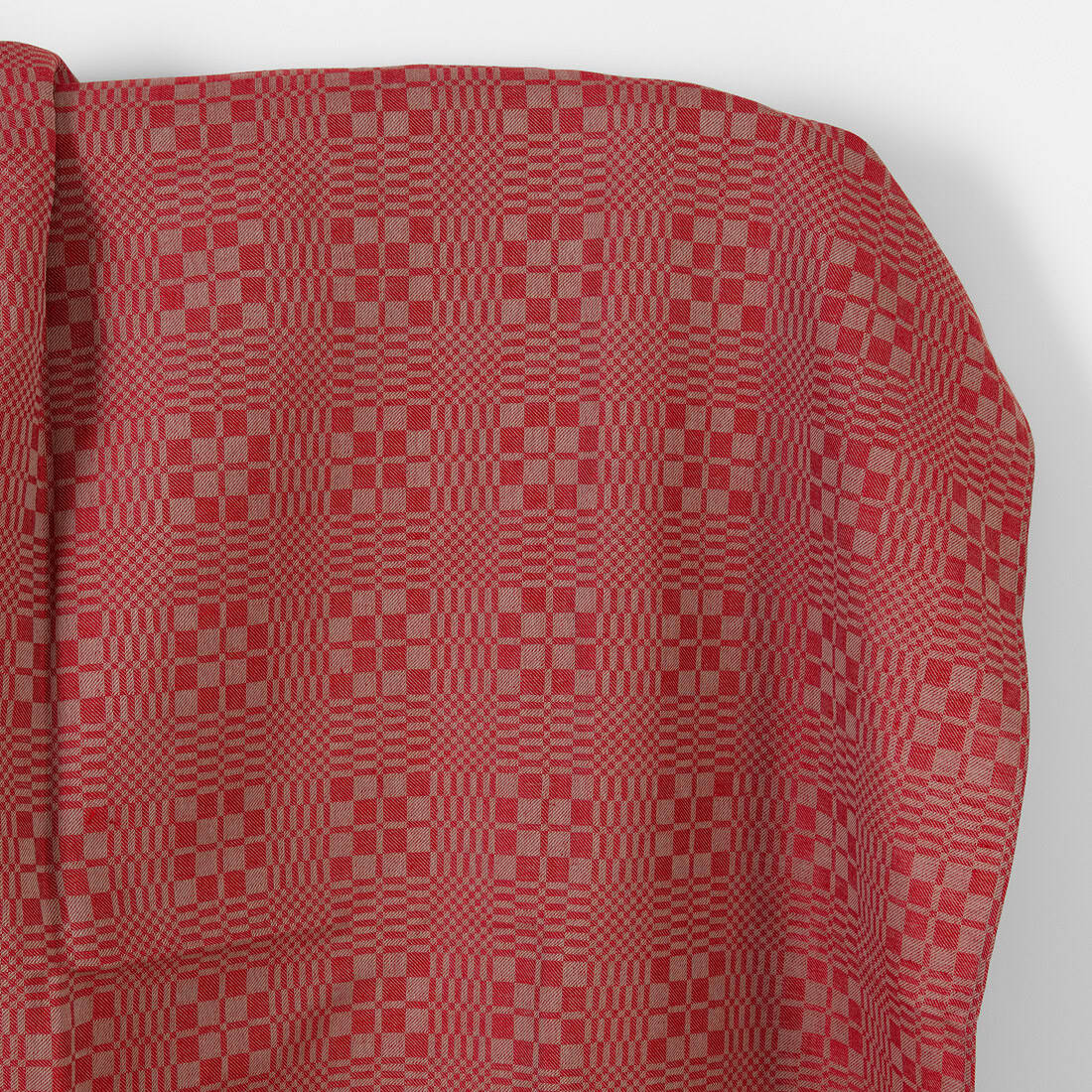 množstvo Ľanovo-bavlnená tkanina červené a béžové keprové kocky