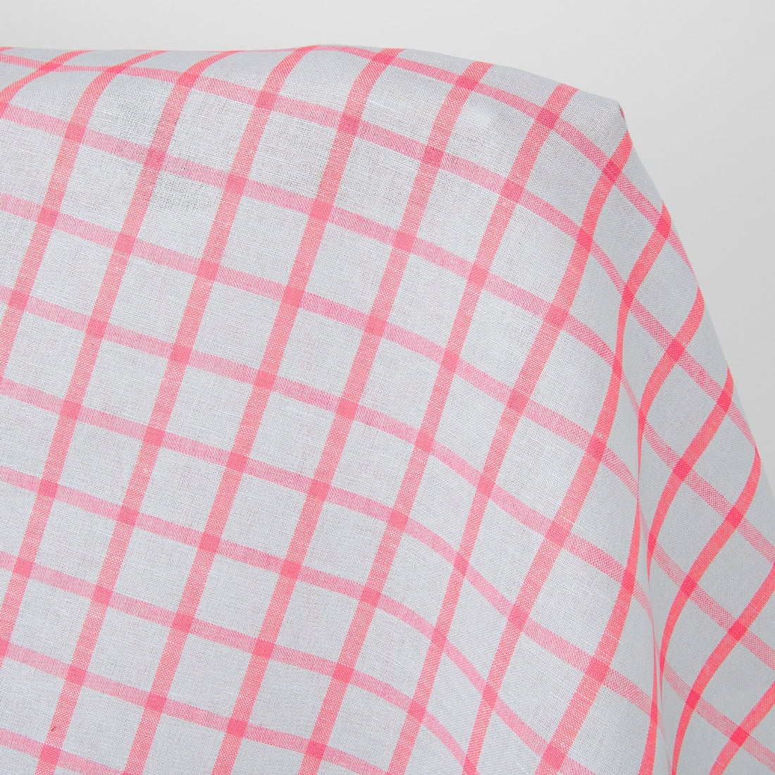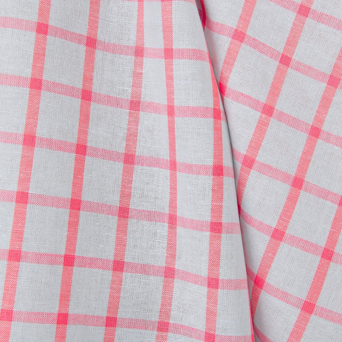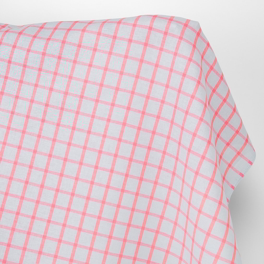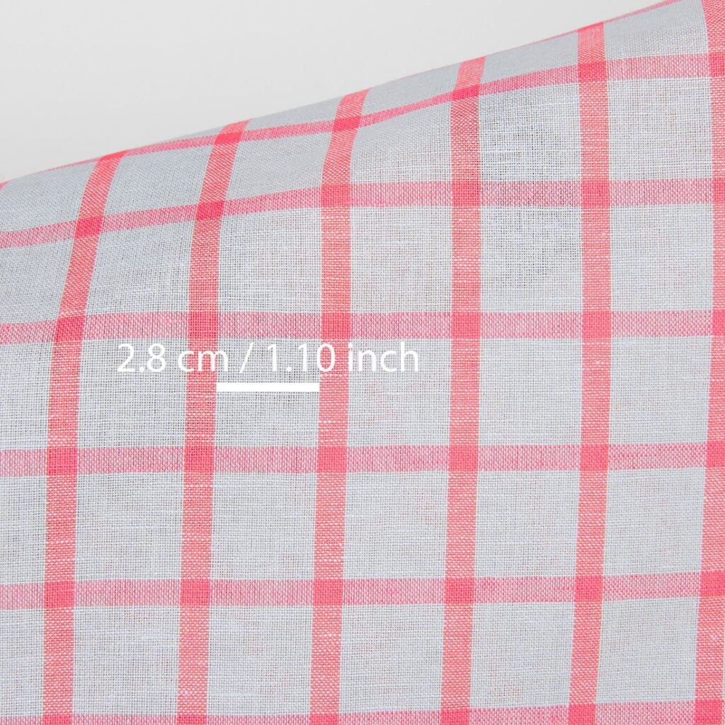množstvo Ľanovo-bavlnená tkanina svetlosivá s jasne červenými kárami