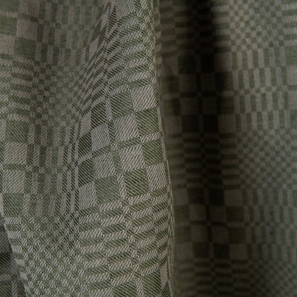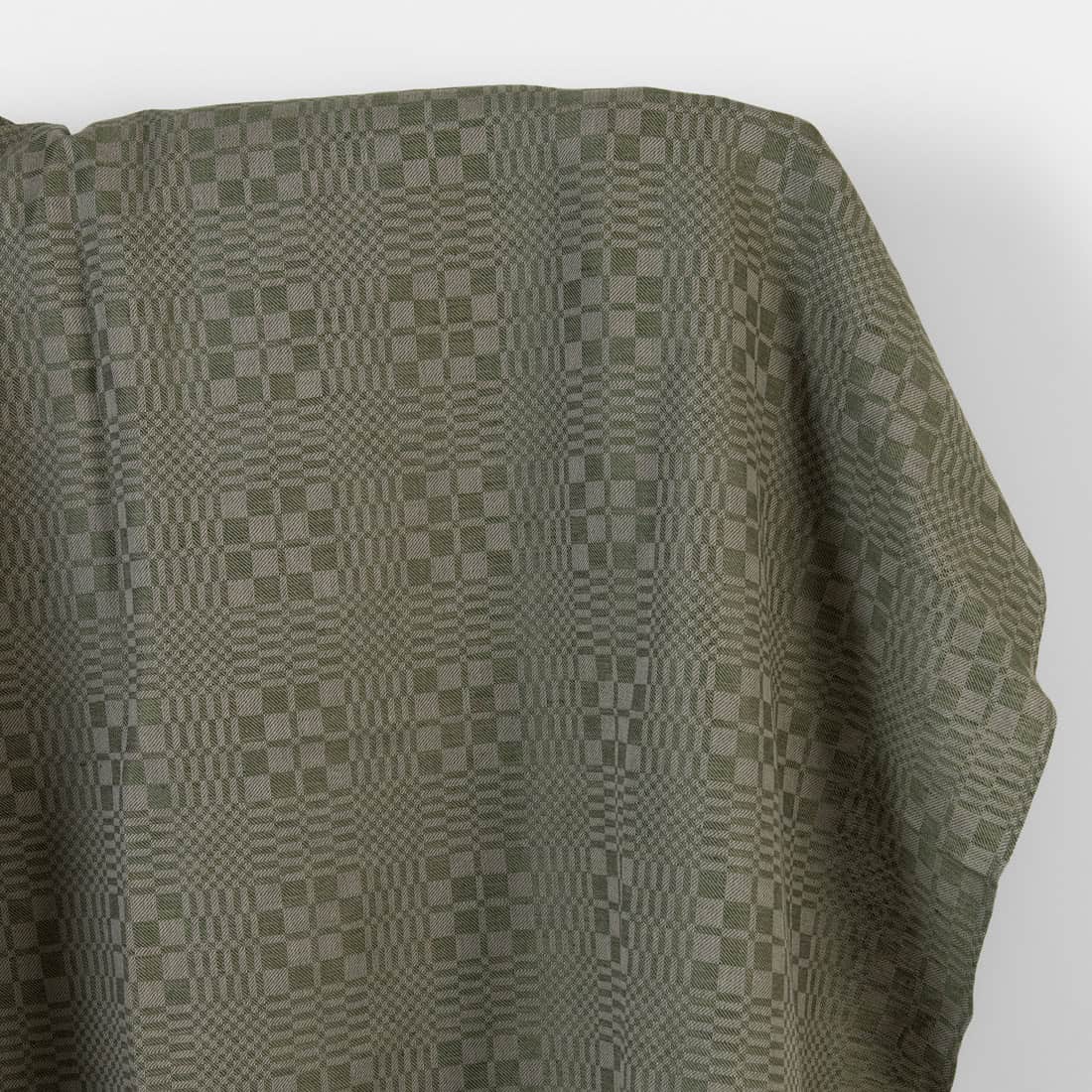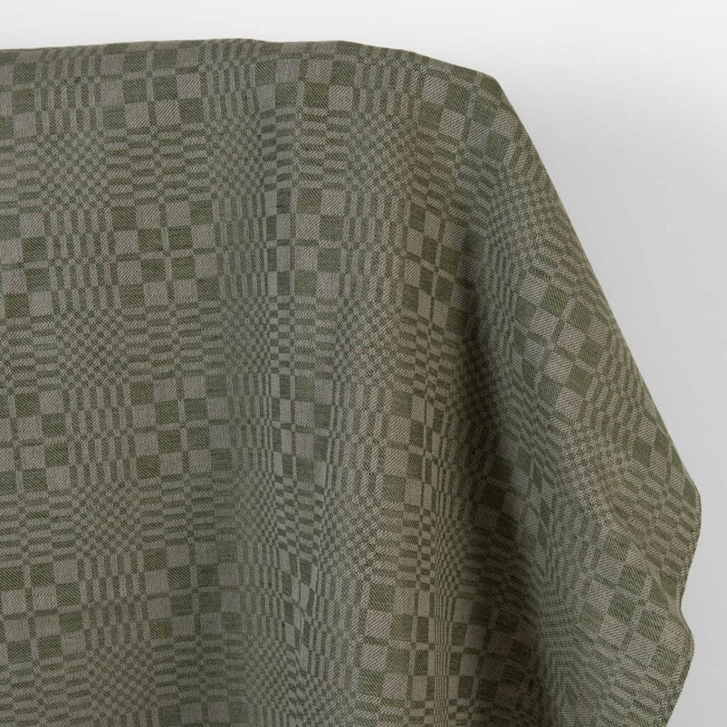 množstvo Ľanovo-bavlnená tkanina zelené a béžové keprové kocky