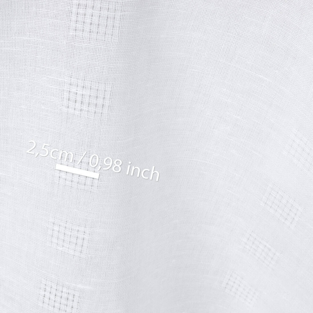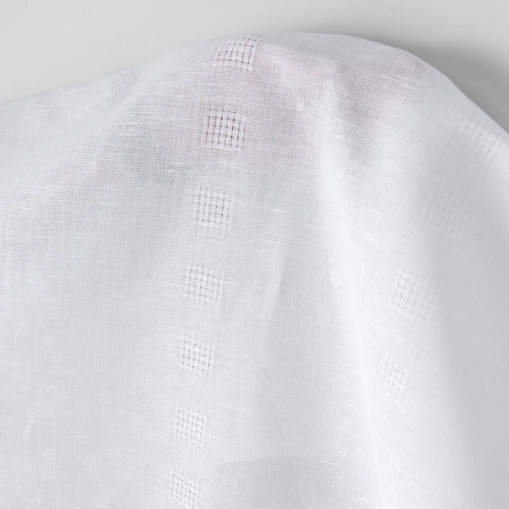množstvo Ľanovo-bavlnená tkanina žiarivo biela s dvoma radmi kociek