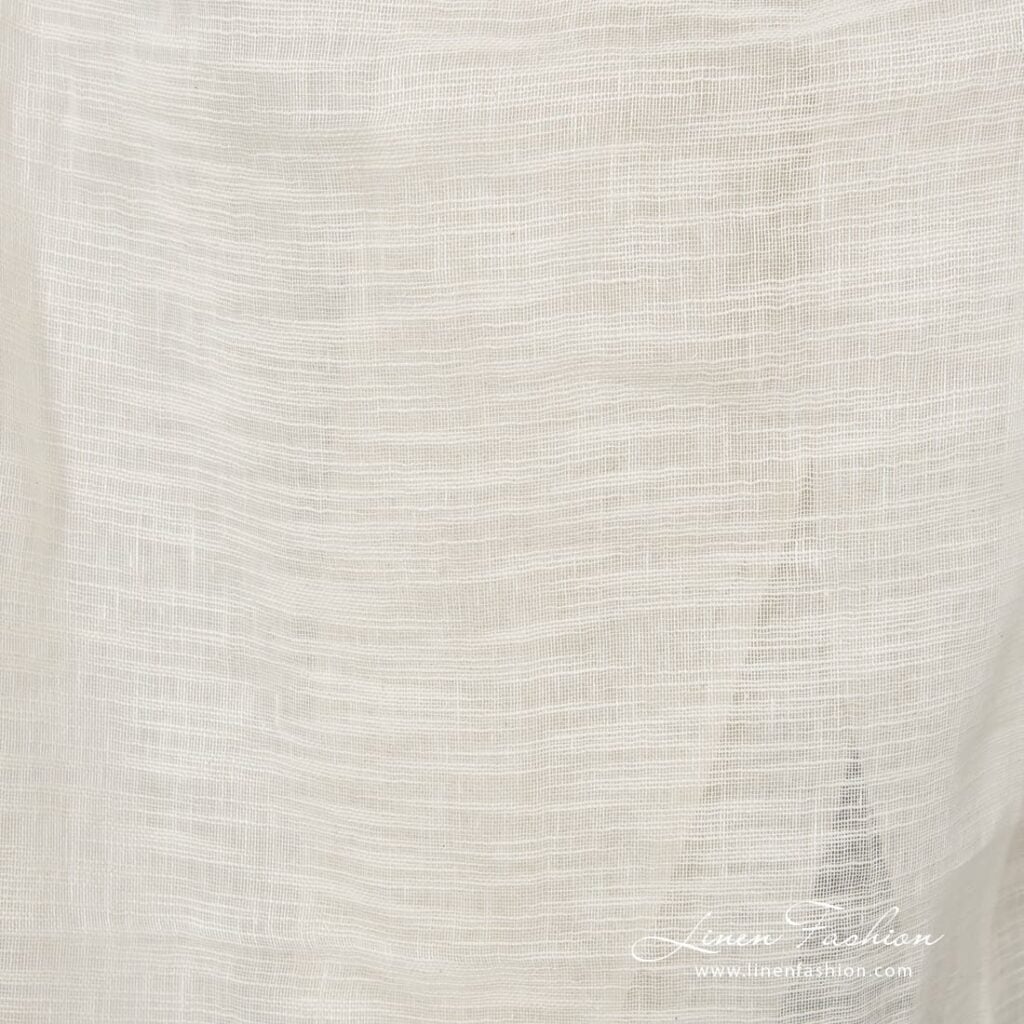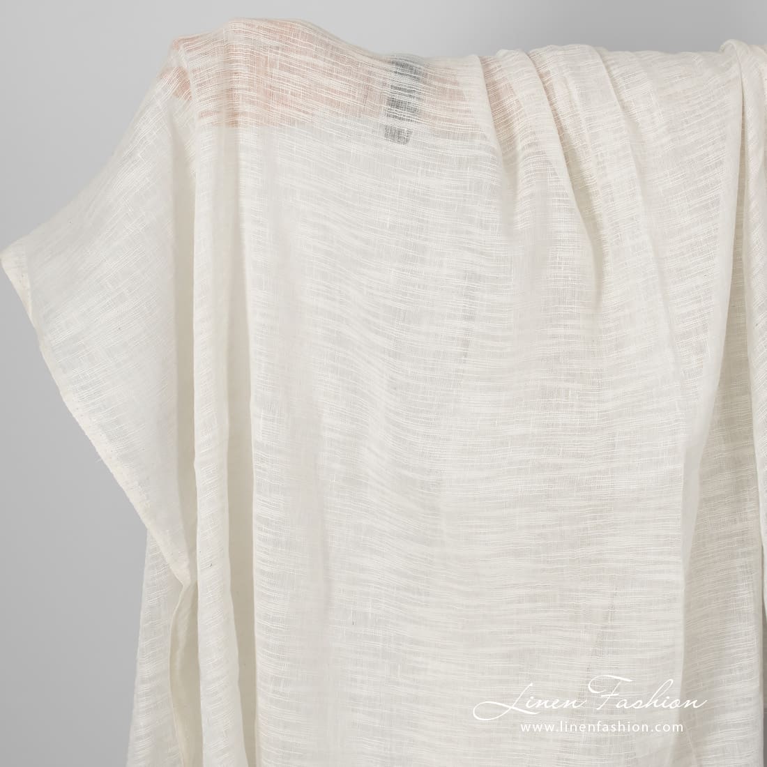 Prírodne biela priesvitná ľanovo-bavlnená tkanina s prúžkami