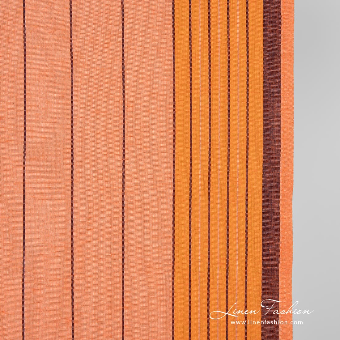 Oranžová froté ľanovo-bavlnená tkanina s prúžkami