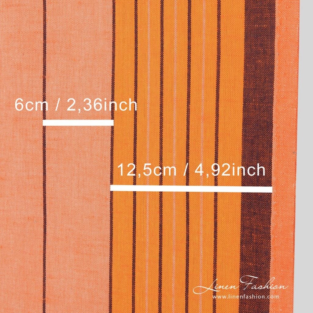 množstvo Oranžová froté ľanovo-bavlnená tkanina s prúžkami