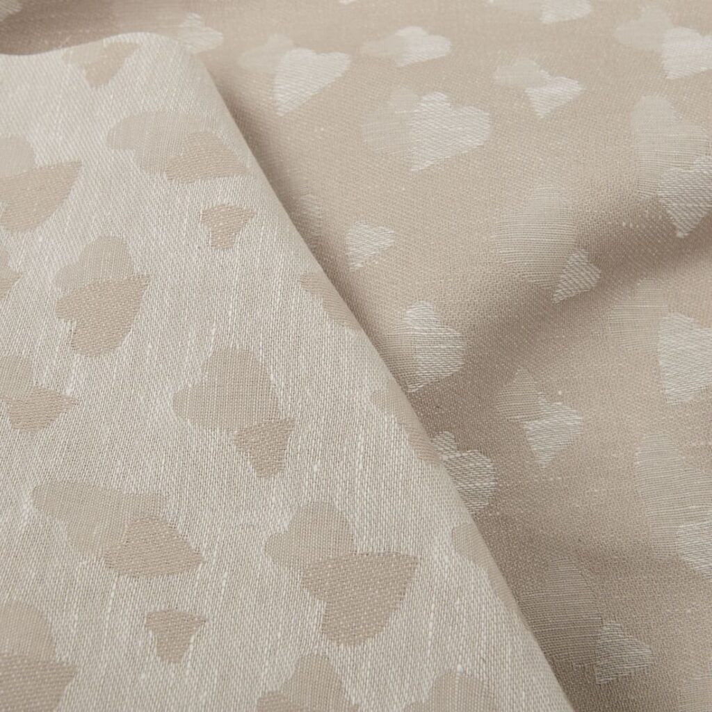 Svetlohnedá poloľanová látka s malými srdiečkami
