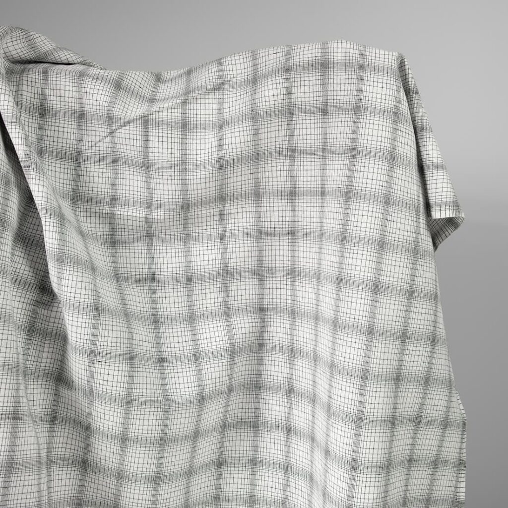 Ľanovo-bavlnená látka biela s čiernymi kárami