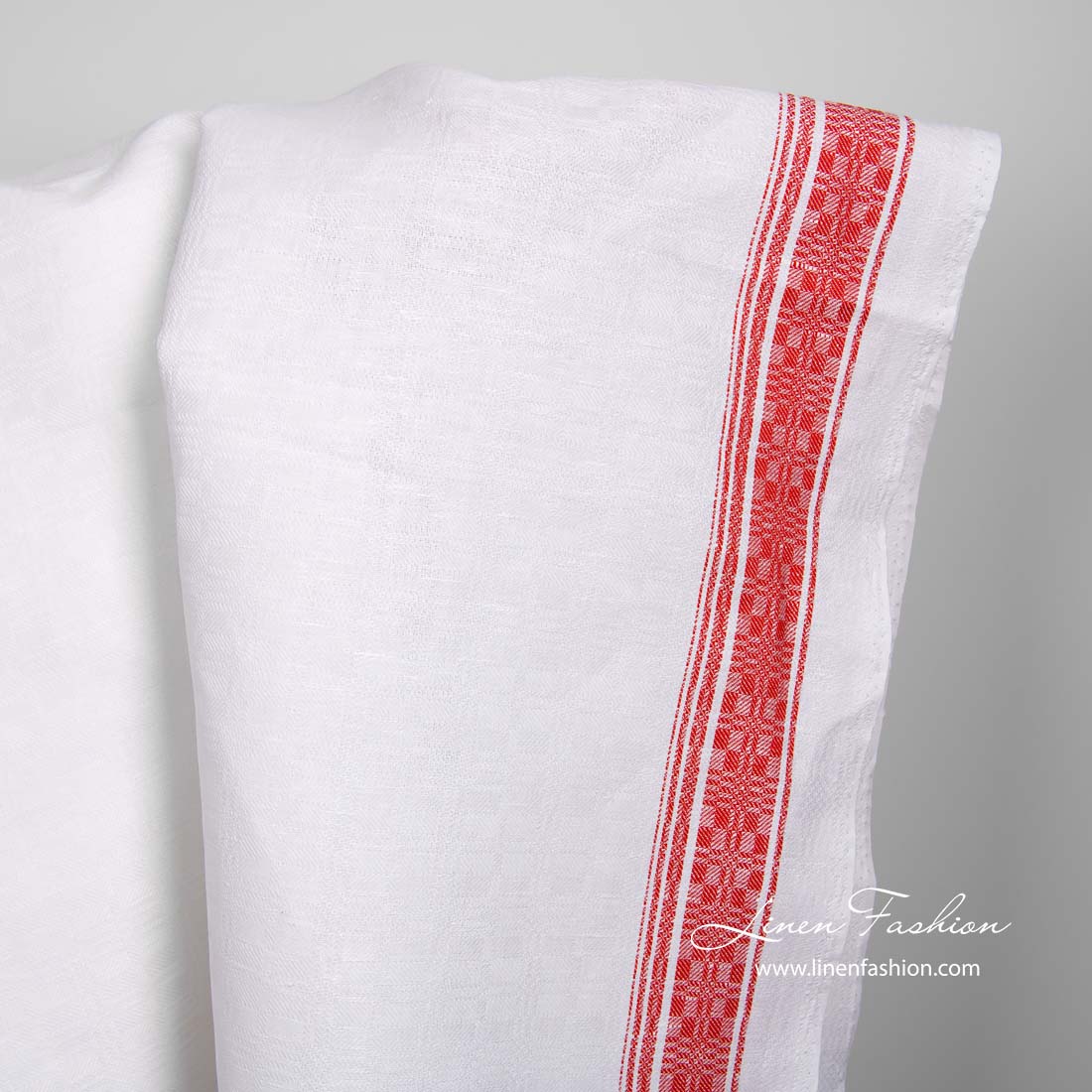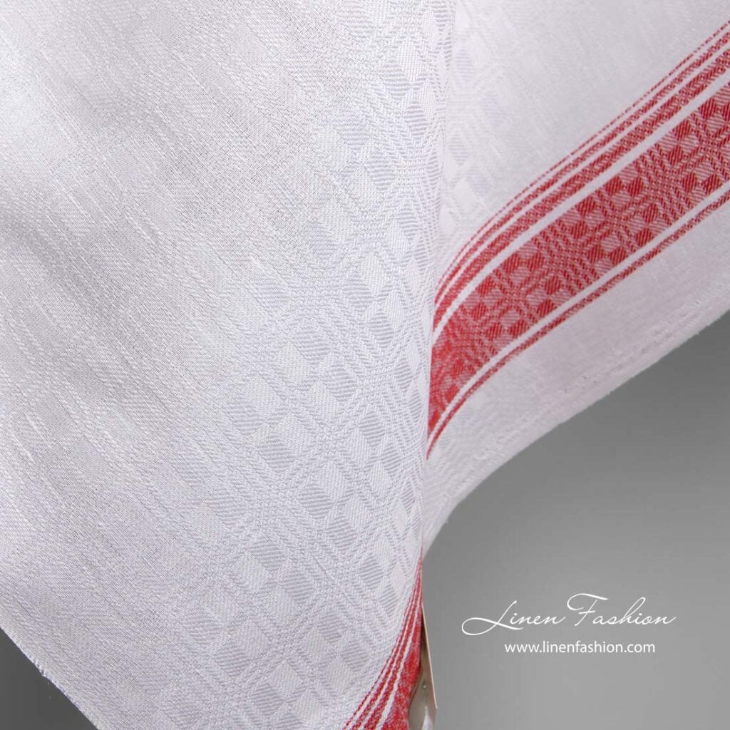 Biela ľanovo-bavlnená tkanina s červenými prúžkami