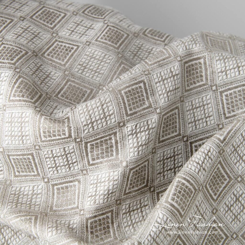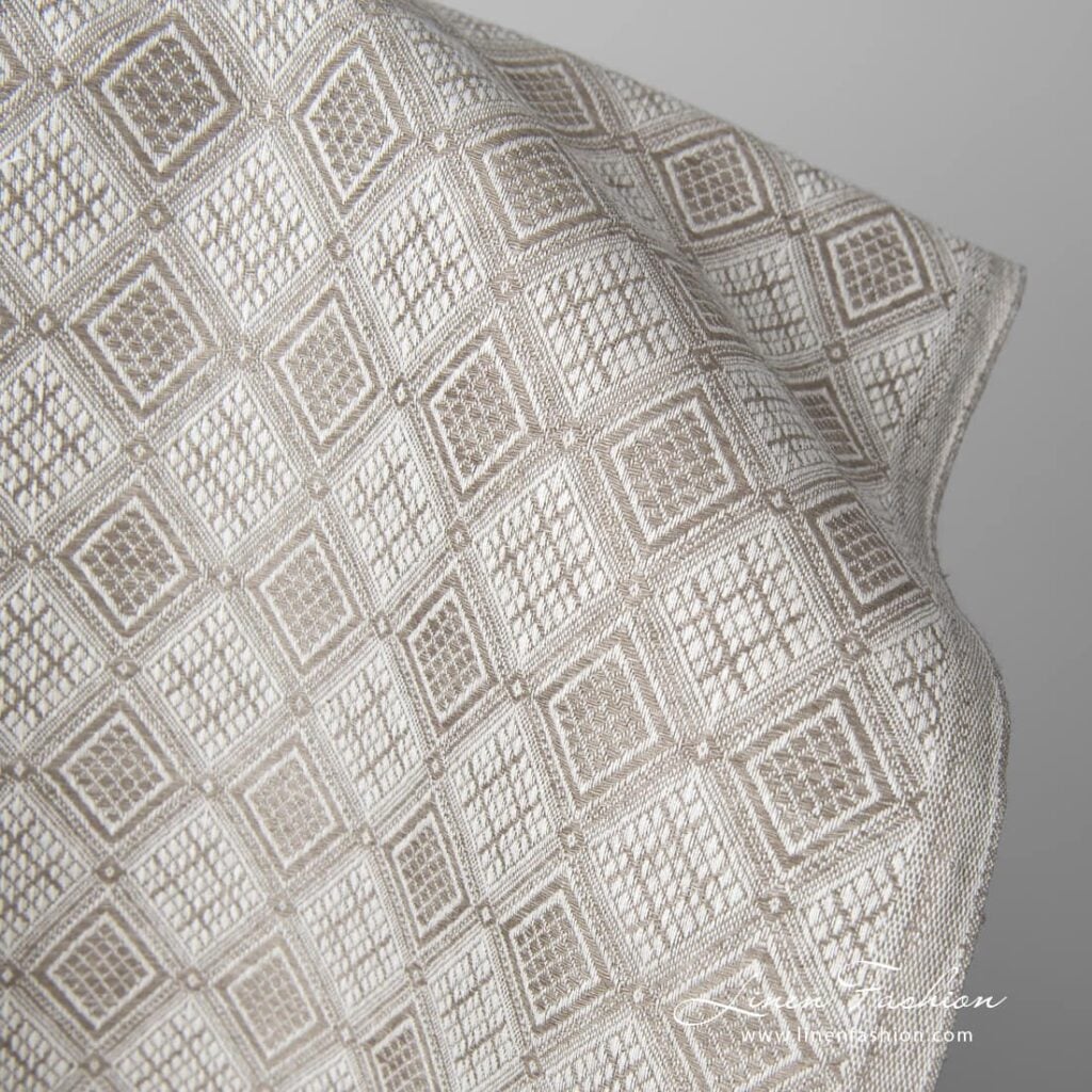 množstvo Ľanovo-bavlnená tkanina piesková farba kosoštvorcový vzor
