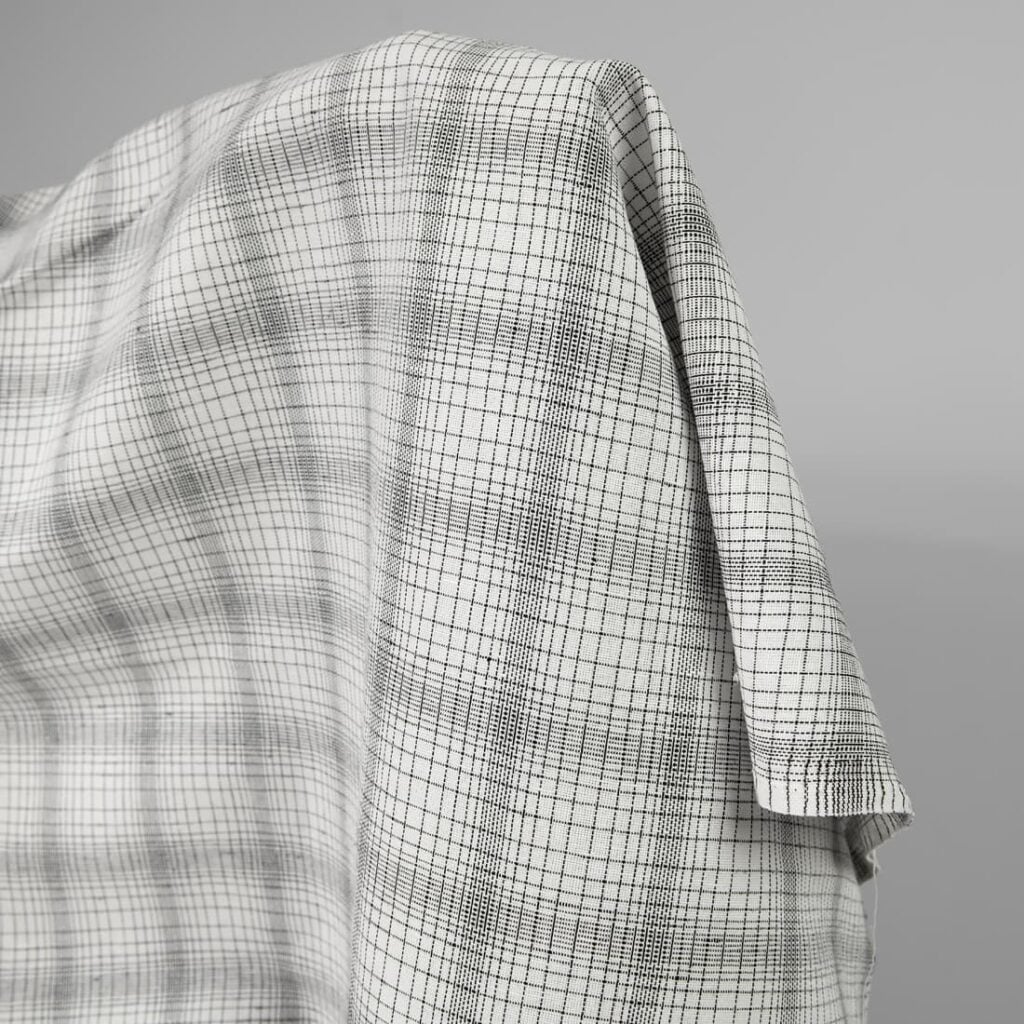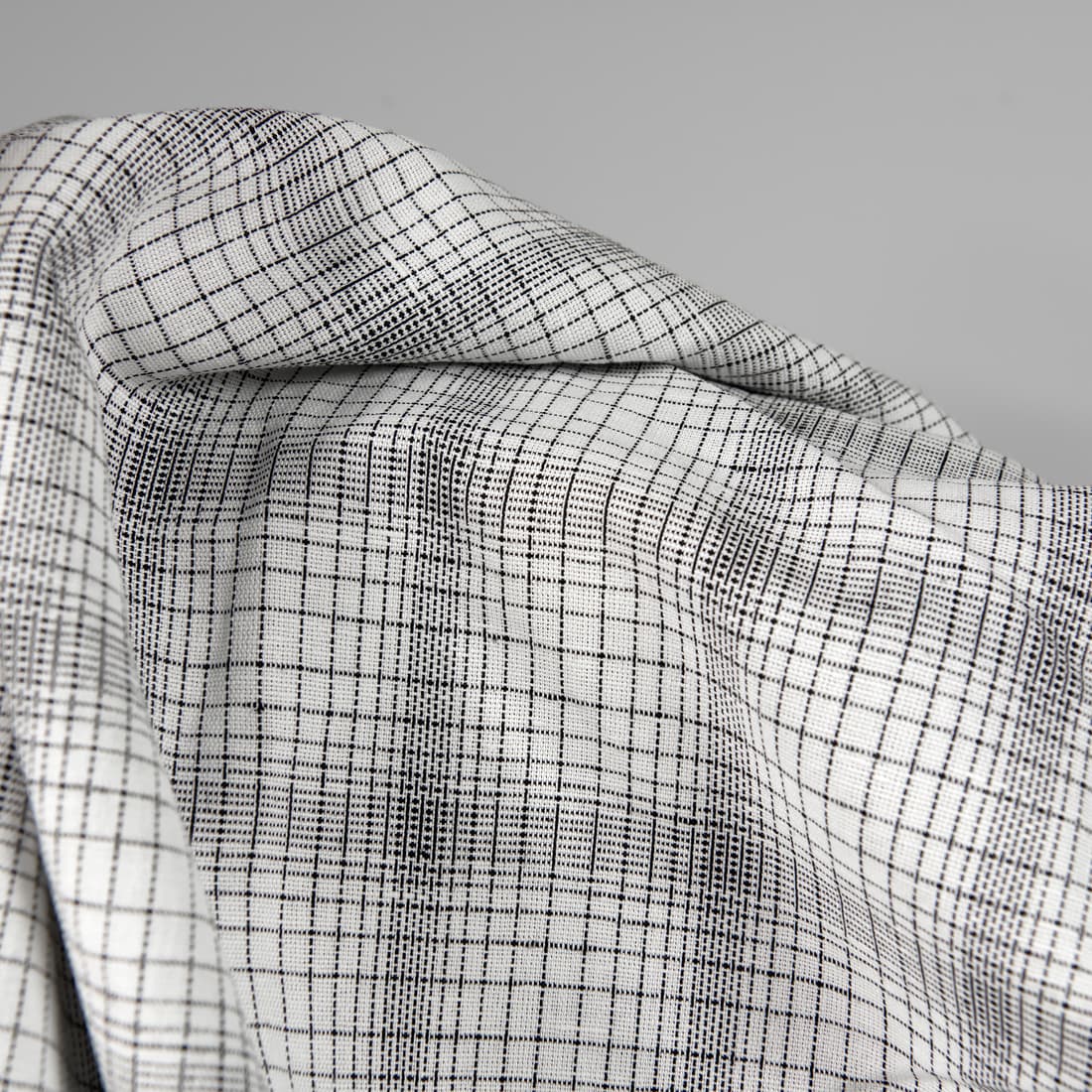množstvo Ľanovo-bavlnená látka biela s čiernymi kárami