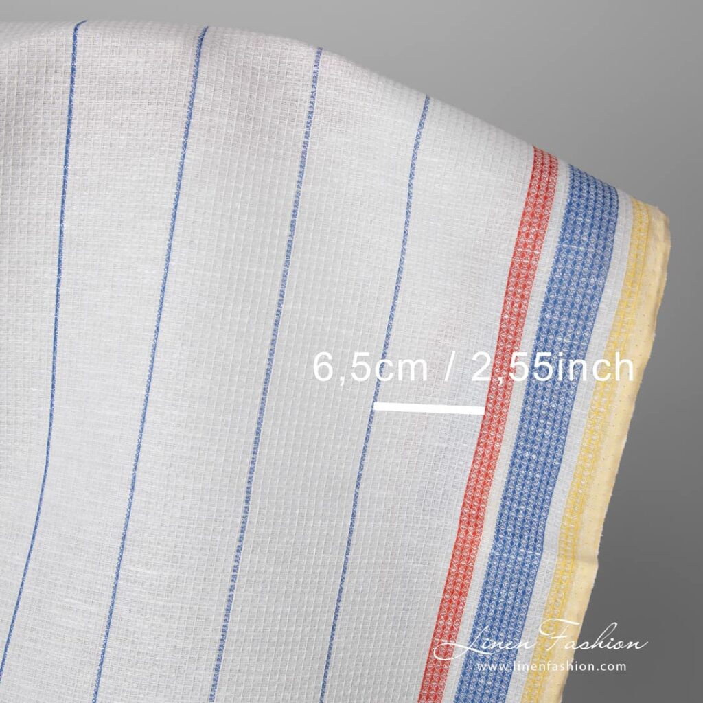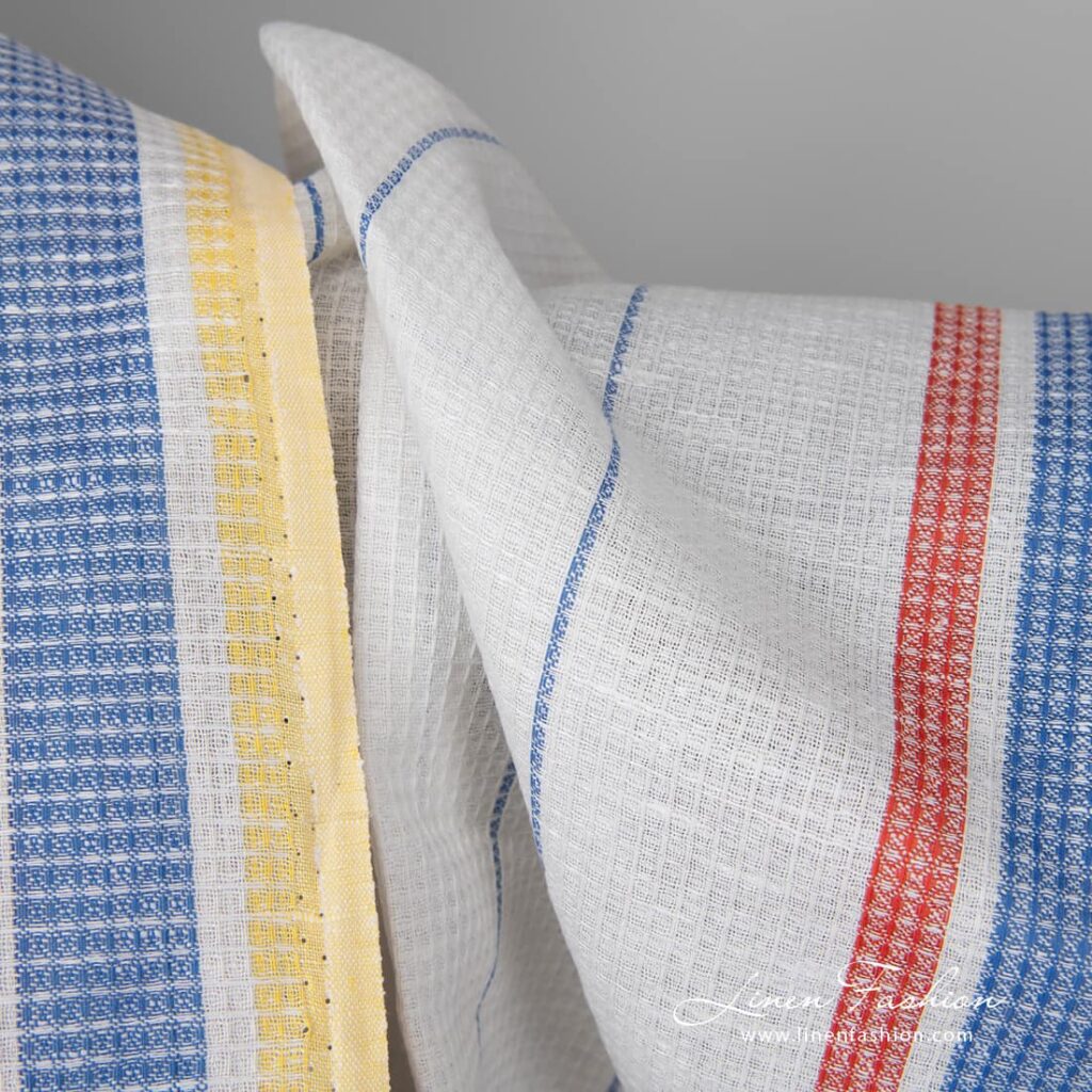 množstvo Ľanovo-bavlnená tkanina biela vafľa so žlto-červenými pruhmi