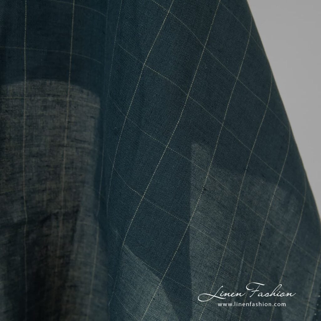 Károvaná tmavomodrá ľanovo-bavlnená látka