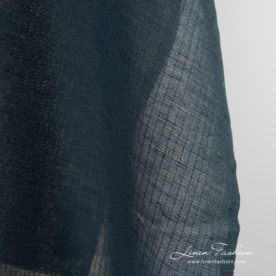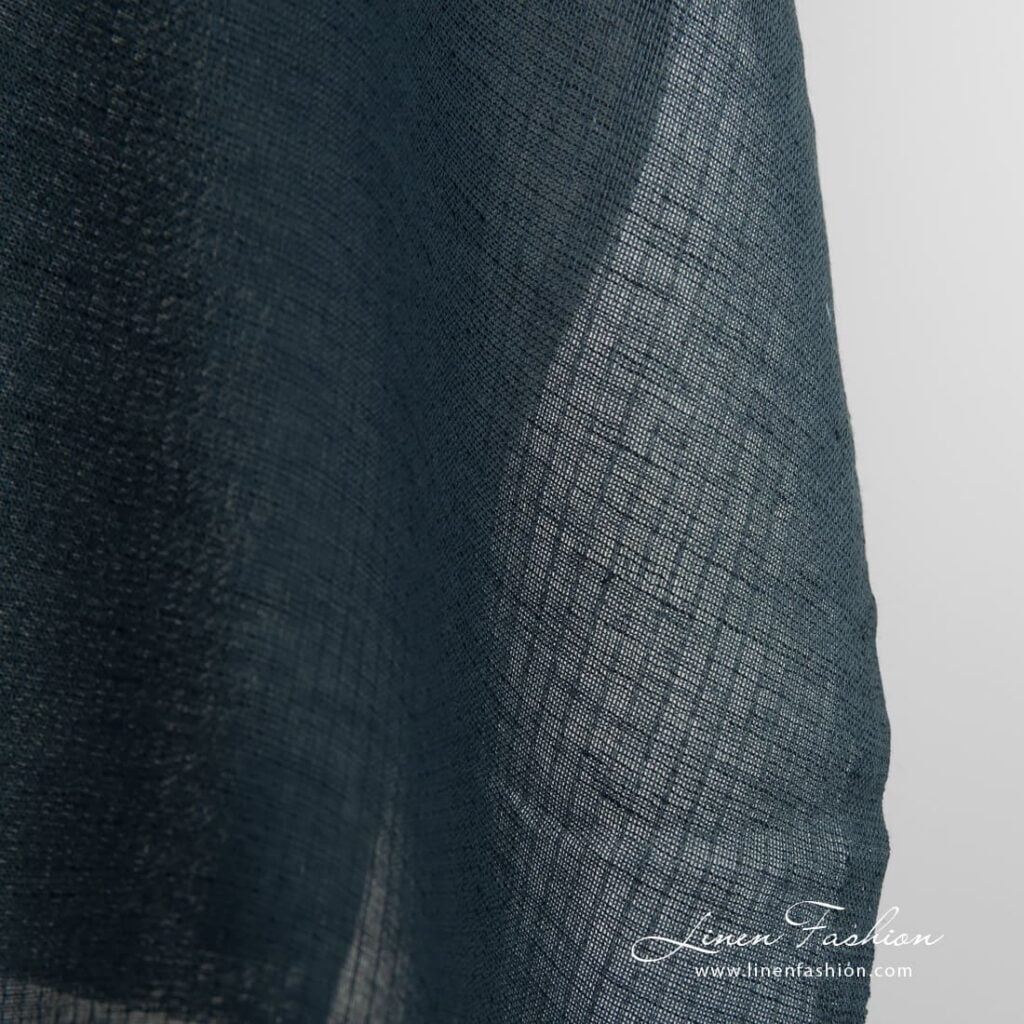 Transparentná tmavomodrá ľanovo-bavlnená tkanina