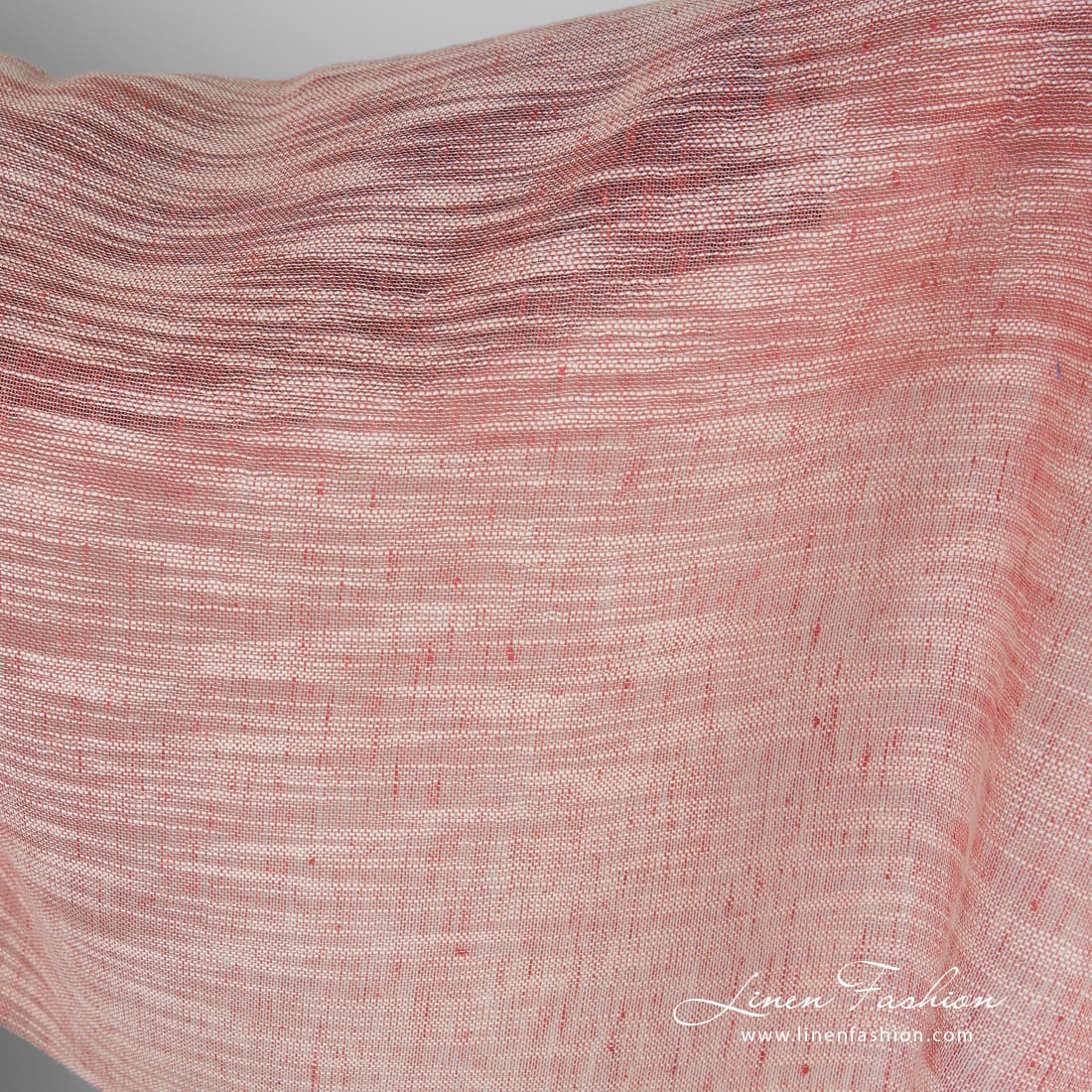 Ľanovo-bavlnená ružovkastá látka s bielymi pruhmi