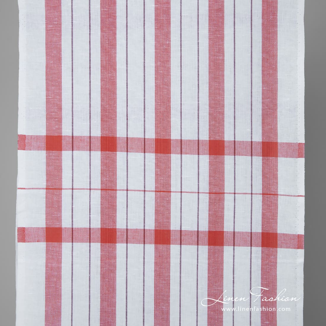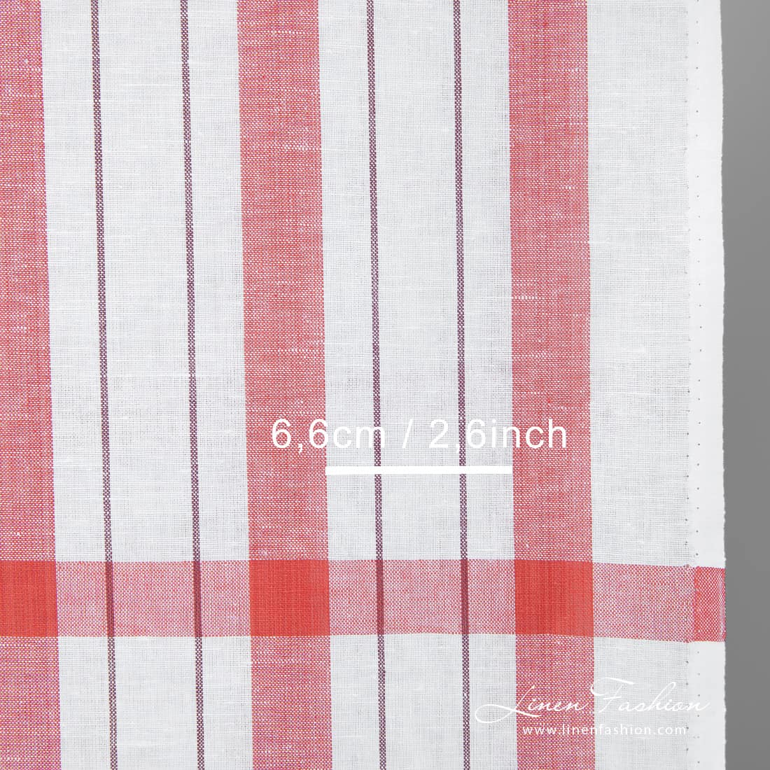 Úzka biela ľanovo-bavlnená tkanina s červenými pruhmi