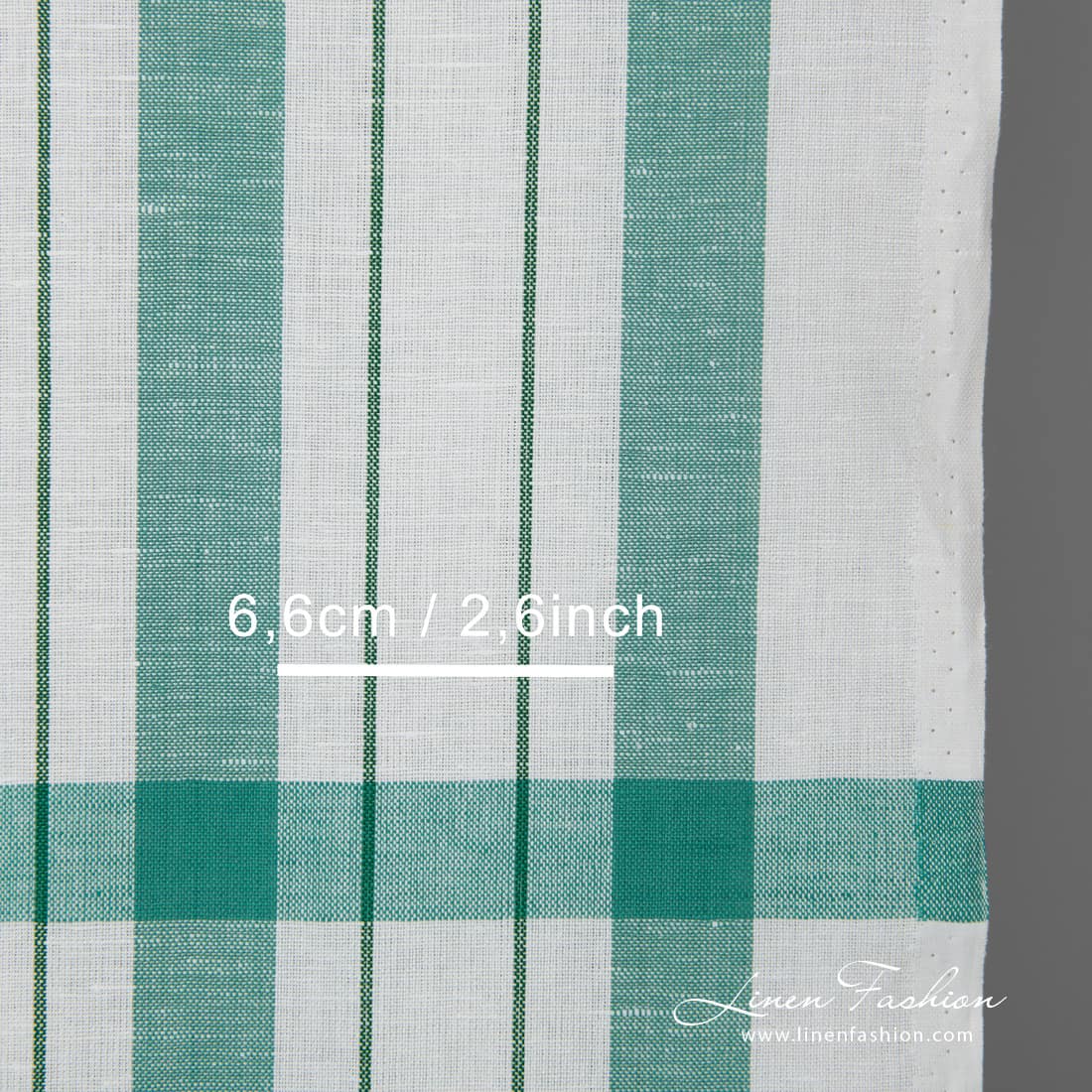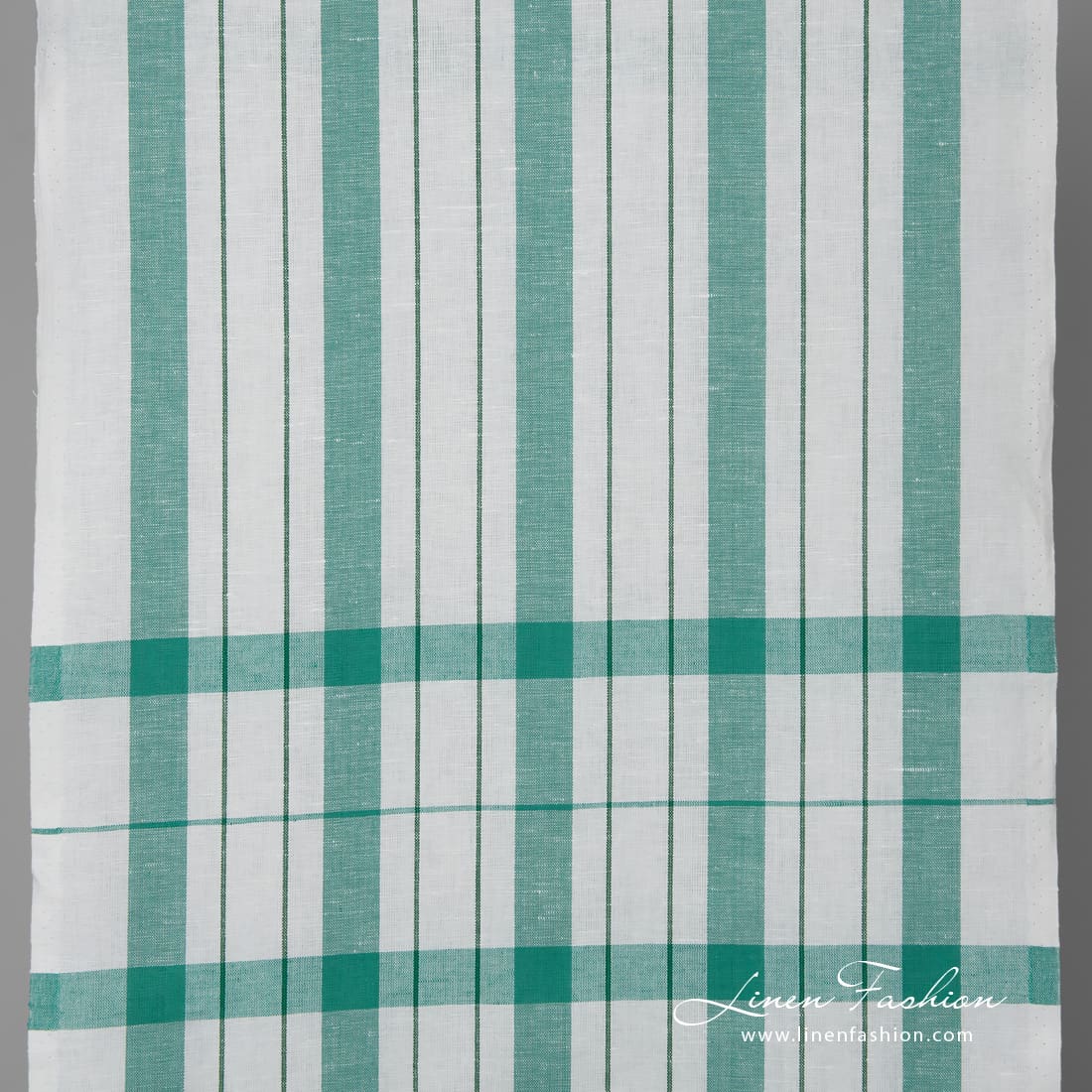 Biela ľanovo-bavlnená látka so zelenými prúžkami